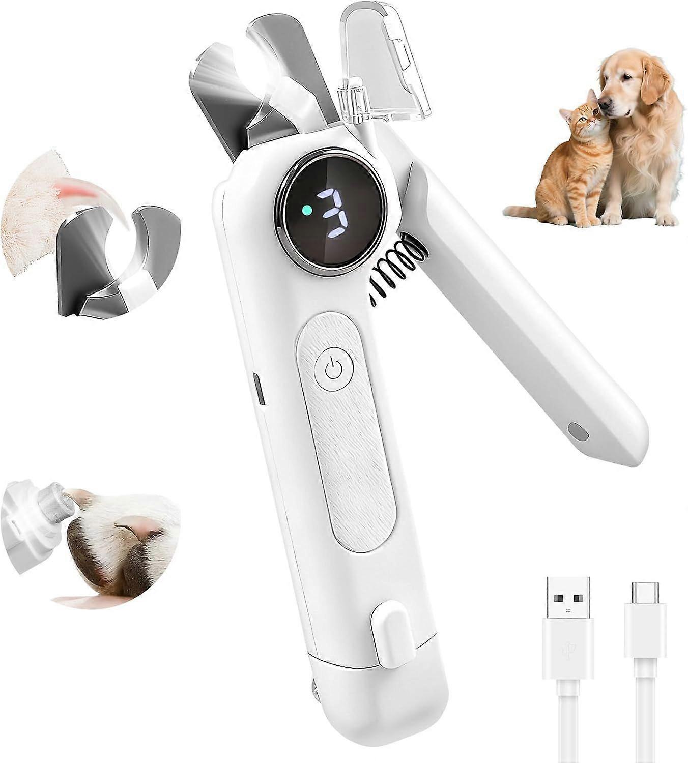 2-in-1 Professional Grooming Kit : Experience the ultimate convenience of a dog nail clipper and grinder in one tool. Quickly trim overgrown nails with the sharp clipper and then seamlessly switch to the grinder for a smooth, polished finish, preventing scratches on floors and furniture Smart LED Display & 3 Adjustable Speeds : Take full control with the innovative LED screen that clearly shows your selected speed. Choose from 3 tailored speeds—low for gentle filing of puppies and kittens, medium for regular use, and high for tough, large dog nails—ensuring a safe and customized groom for every pet Ultra-Quiet Operation & Rechargeable Design : Say goodbye to stressful grooming sessions. Our electric dog nail trimmer operates at a whisper-quiet noise level with minimal vibration, keeping anxious pets calm. The built-in USB rechargeable battery offers cord-free freedom and long-lasting power for multiple uses on a single charge Dual LED Lights & Splash Guard for Precision & Safety : Two bright LED lights illuminate the nail, making the quick highly visible to avoid accidental nicks. Combined with the protective splash guard that contains dust and debris, you achieve a precise, safe, and clean trimming experience every time Ergonomic & All-Size Friendly : Designed for comfort and versatility, the ergonomic body ensures a secure and non-slip grip. This all-in-one dog nail clipper is perfectly suited for all pets, from small cats and puppies to medium and large dogs, making it the only nail care tool you'll ever need