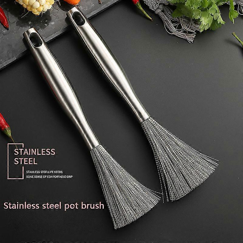 Stainless Steel Pan Brush Bowl Plate Long Handle Strong Decontamination Convenient Fast Sink Stove Kitchen Clean Tools