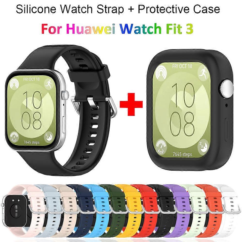 Silicone Watch Strap + Protective Case For Huawei Watch Fit 3 Watchband Bracelet Band Correa Screen Protector Cover Shell