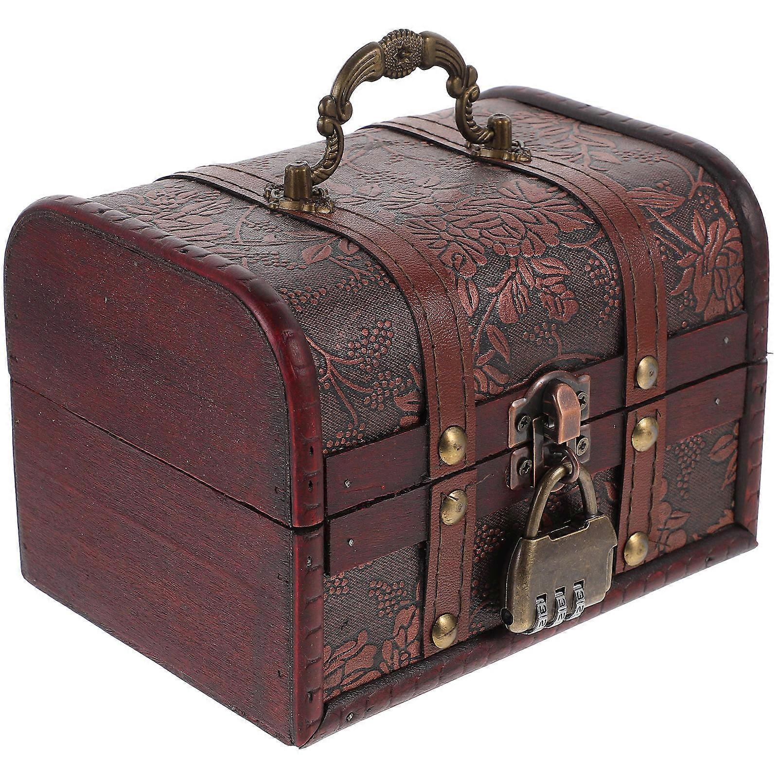 Secure Box Vintage Treasure Chest Wood Jewelry Case With Password Lock Protection Suitable For Men And Women Christmas Gift 1Piece