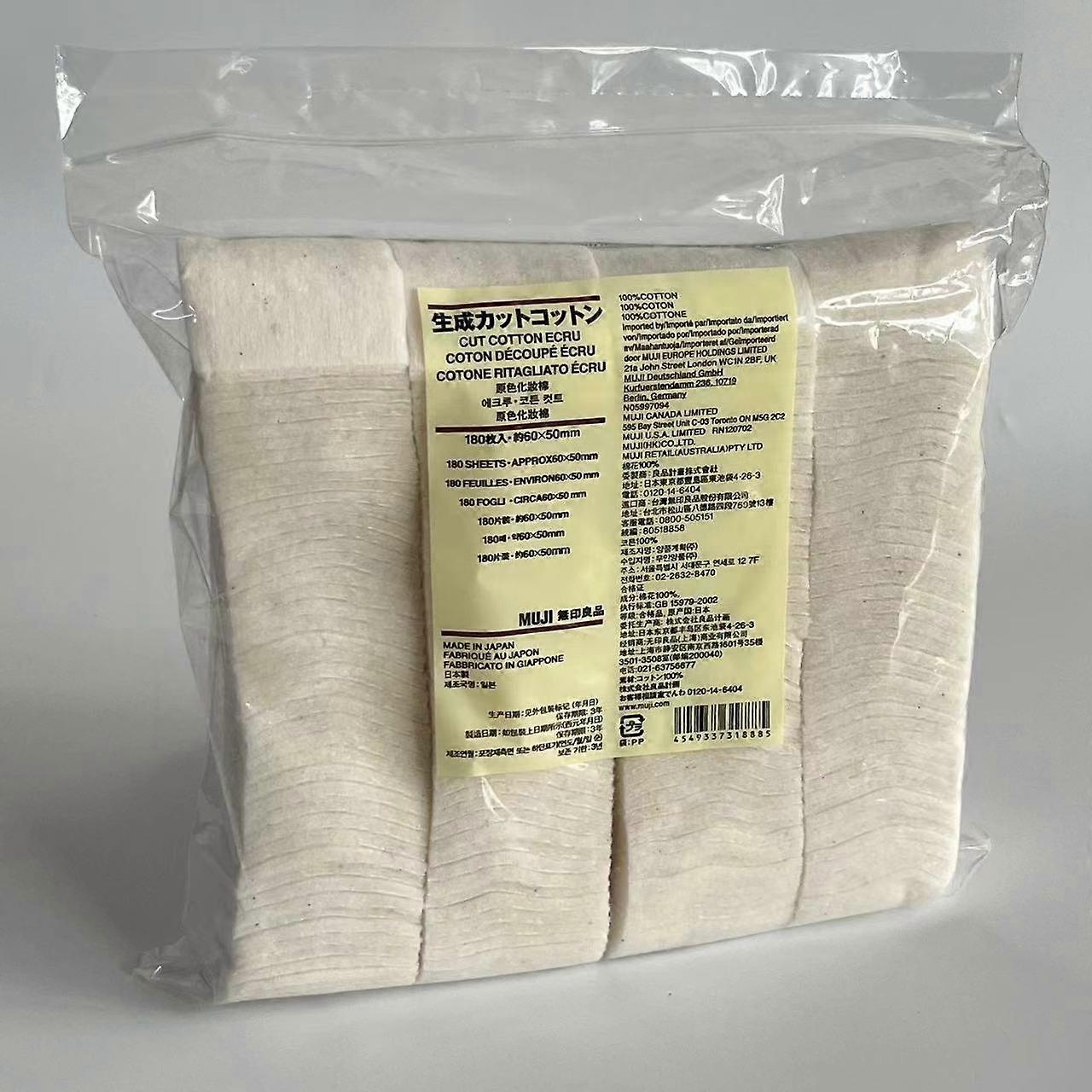 Japanese Organic 100% Cotton 180 sheets 50x60mm Unbleached Wool High In Fiber ECRU Soft Pad Prime Wick Household Cleaning Cotton