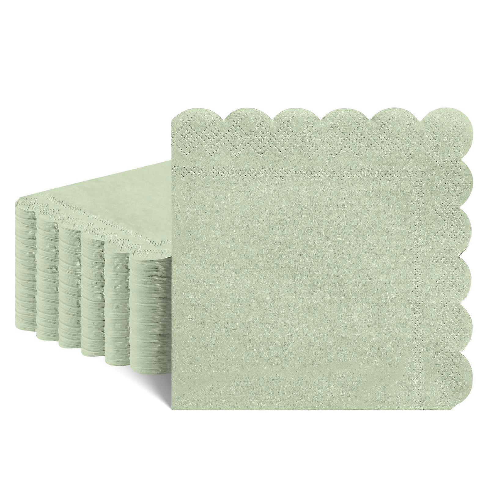 60 Pcs Sage Green Cocktail Napkins, Elegant Scalloped Edge 5x5 Inch Paper for Weddings and Baby Showers