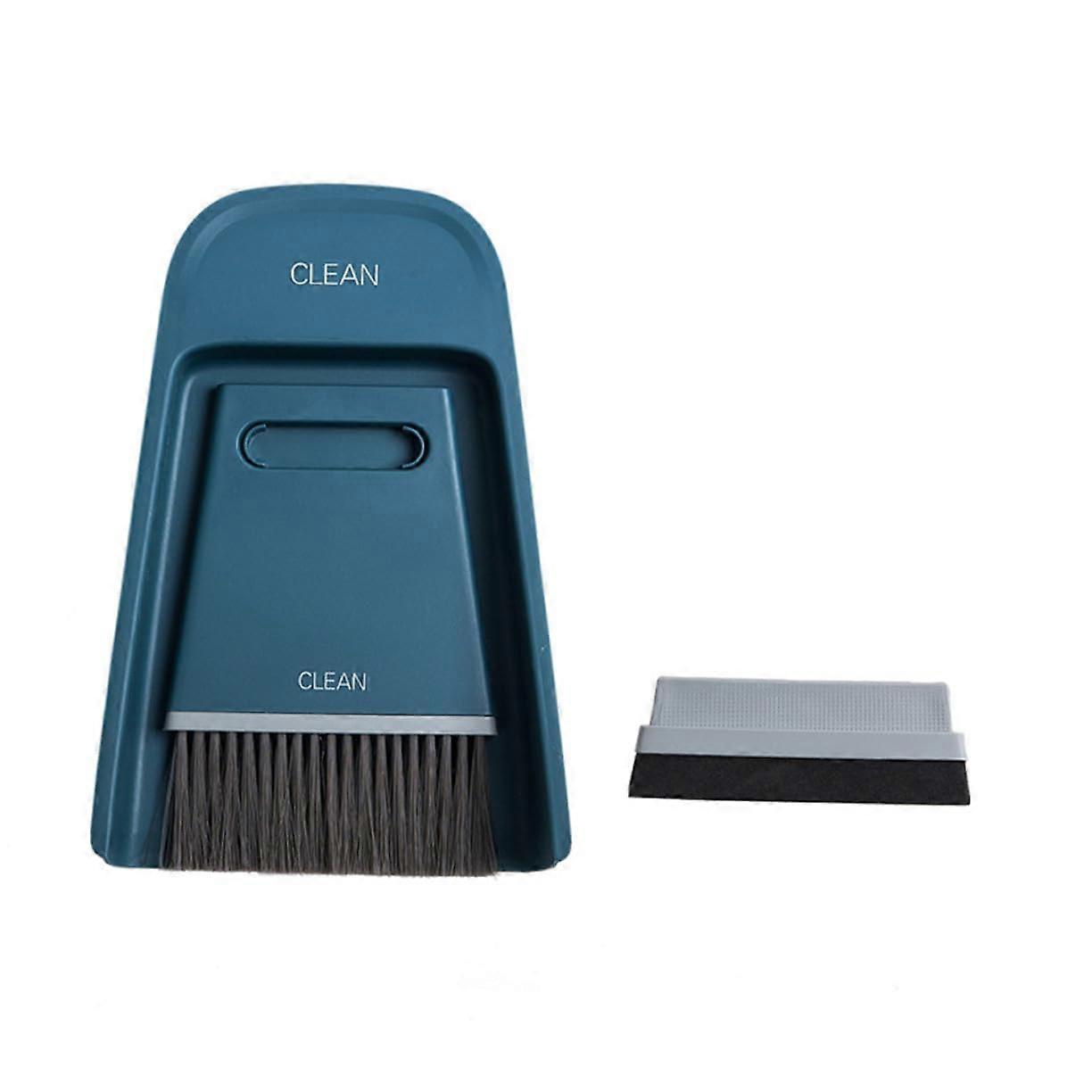 Mini Broom and Dustpan Set with Soft Bristles for Home and Office Narrow Space Cleaning Dark Blue
