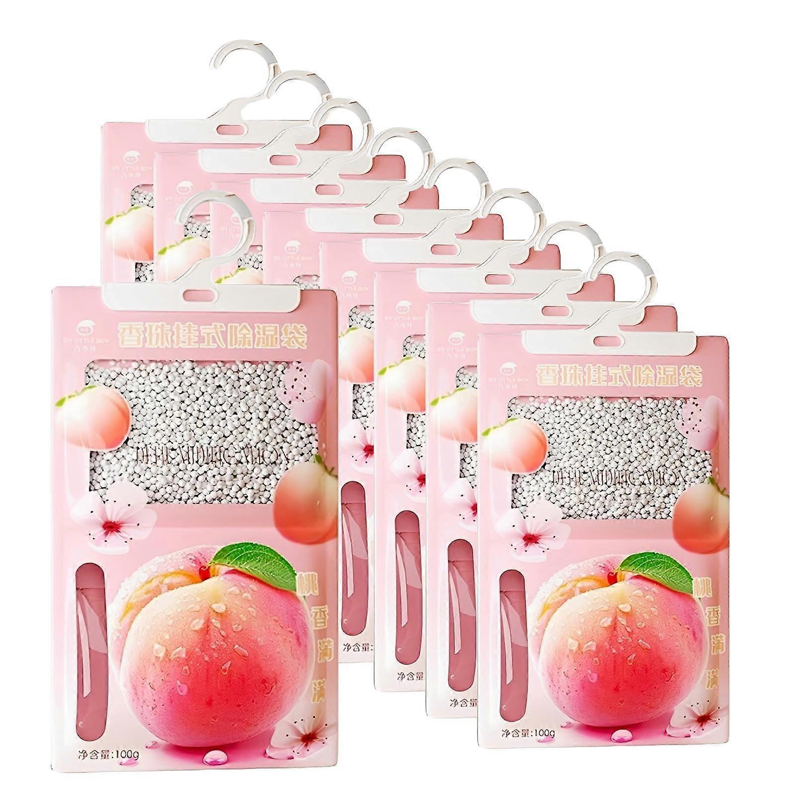9 x 100g Hanging Wardrobe Dehumidifier Bags with Peach Fragrance, Moisture Absorber for Closet and Bathroom