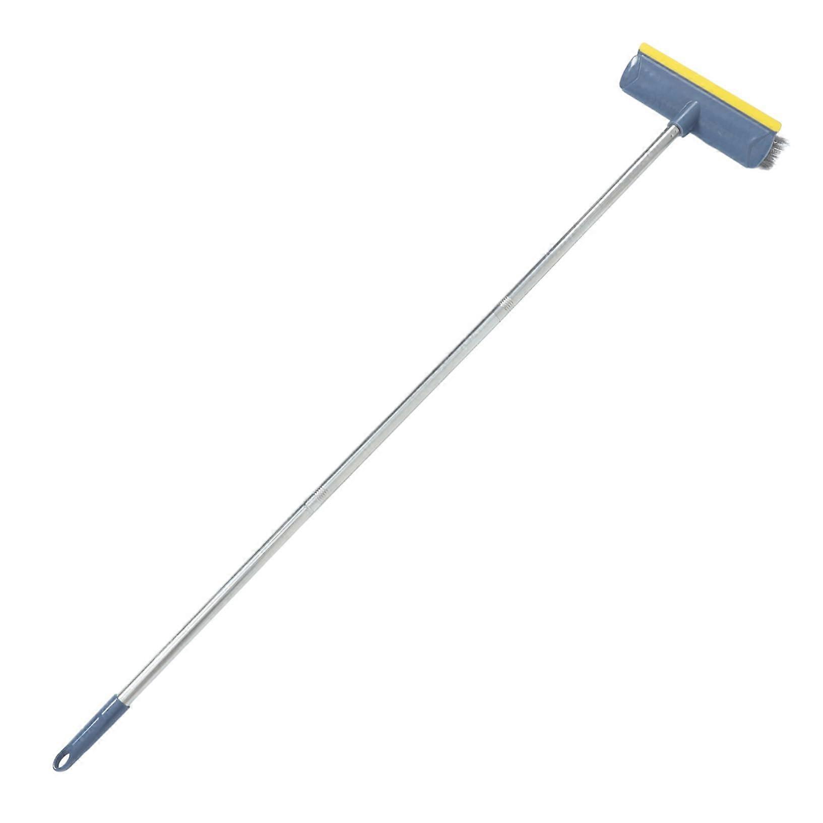 Indoor Broom Long Handle with Scraper Stiff Bristle for Bathroom Kitchen Floor Cleaning Vibrant Blue