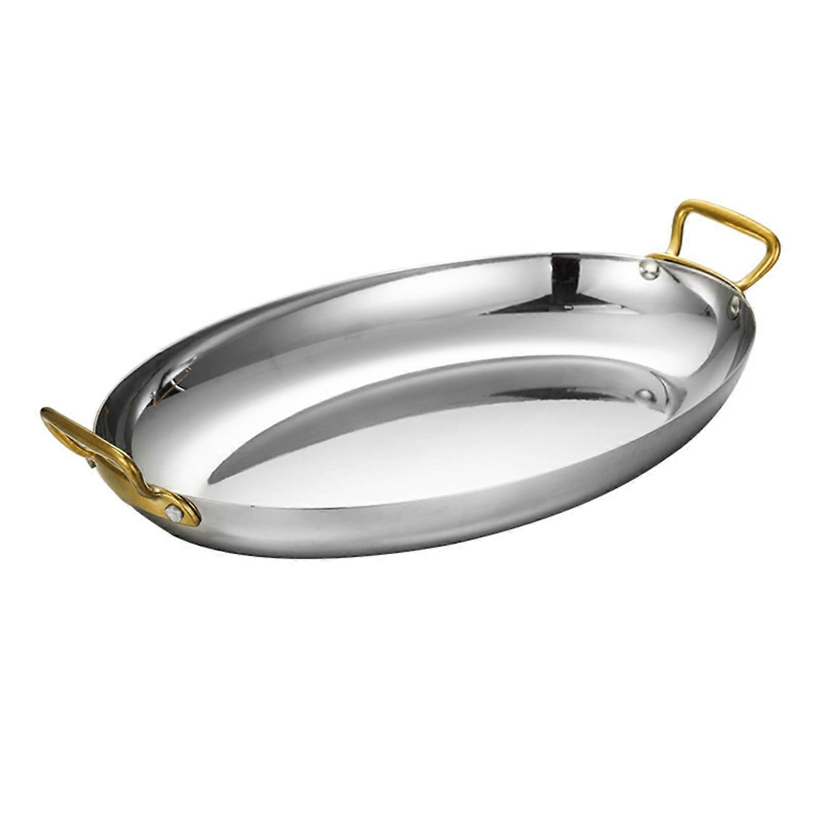 Large Stainless Steel Paella Pan 40cm with Double Riveted Handles for Gas and Induction Cooking
