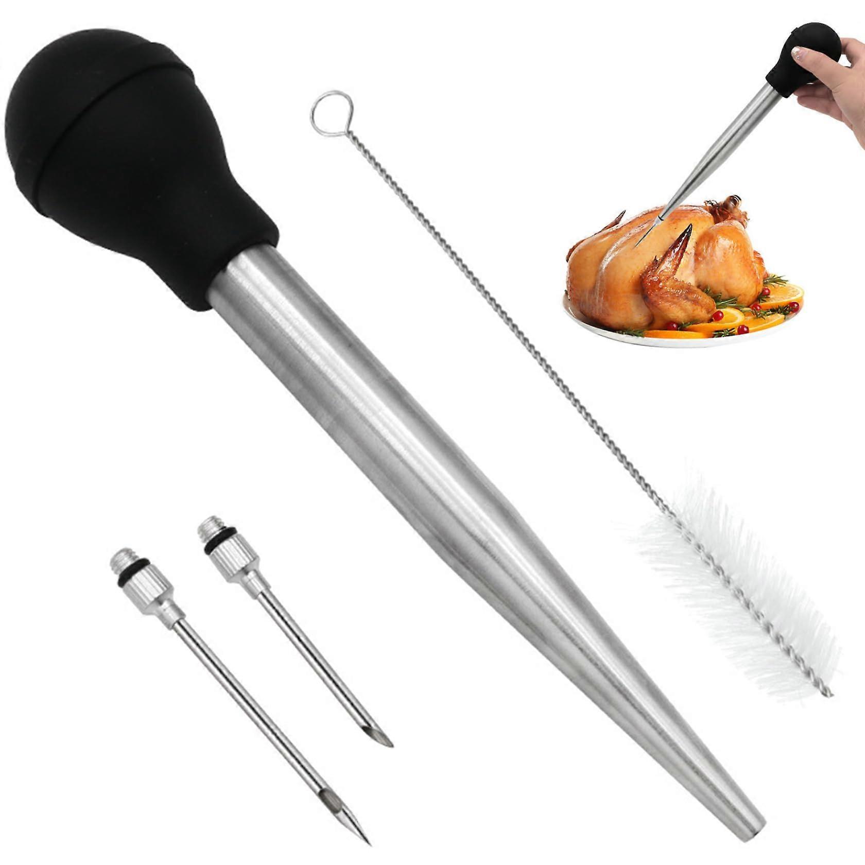 Turkey Baster Stainless Steel Syringe with Silicone Bulb and Needles, Meat Injector for Marinades