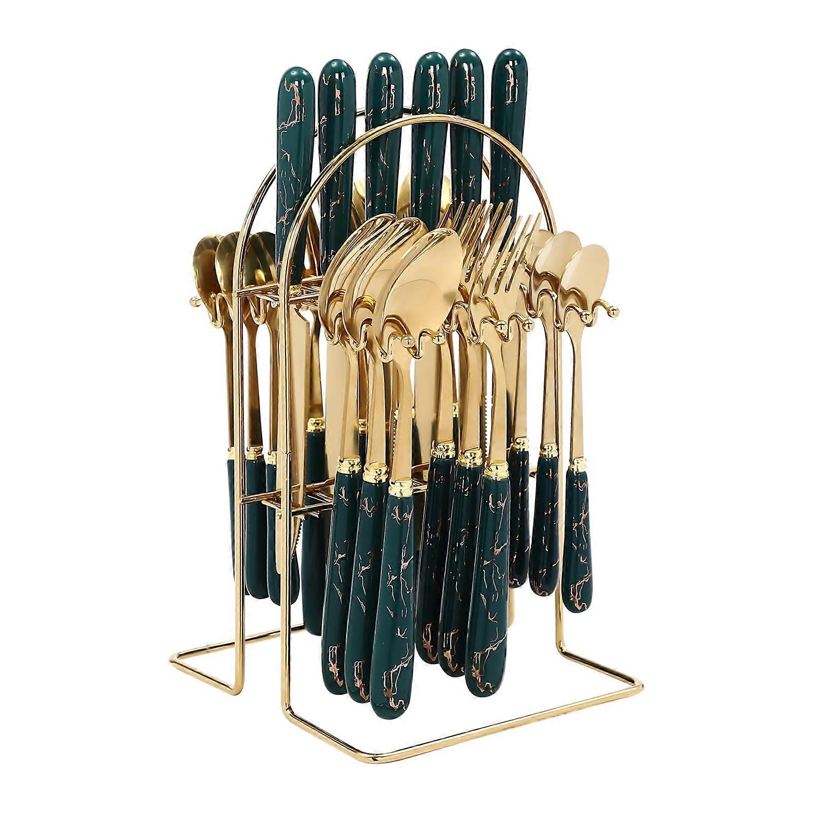 24 Piece Stainless Steel Cutlery Set with Stand, Elegant Handle Flatware for 6, Dark Green