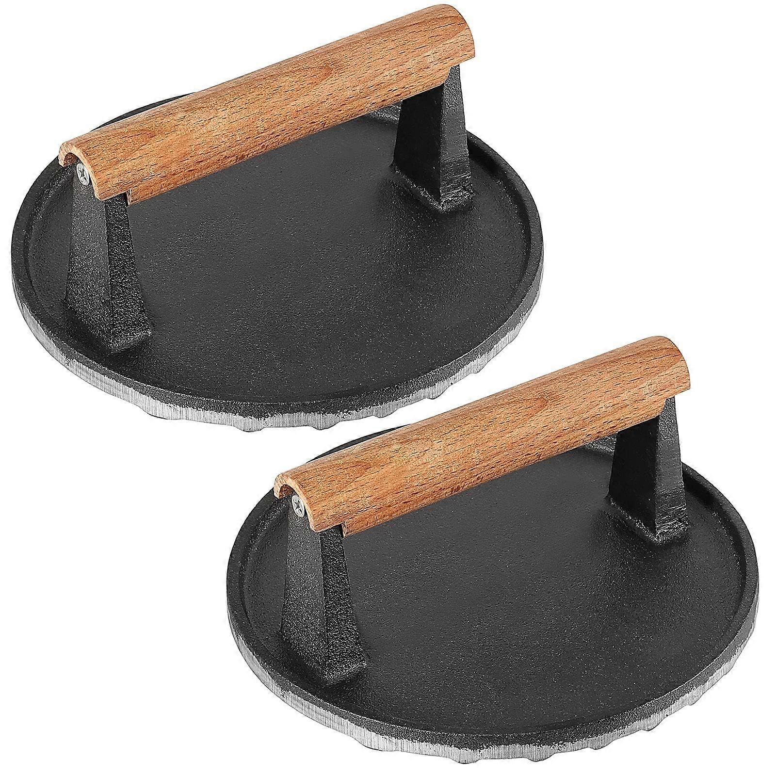 2 PCS 7 Inch Cast Iron Grill Press with Wood Handle, Heavy Duty Burger and Bacon Steak Weight