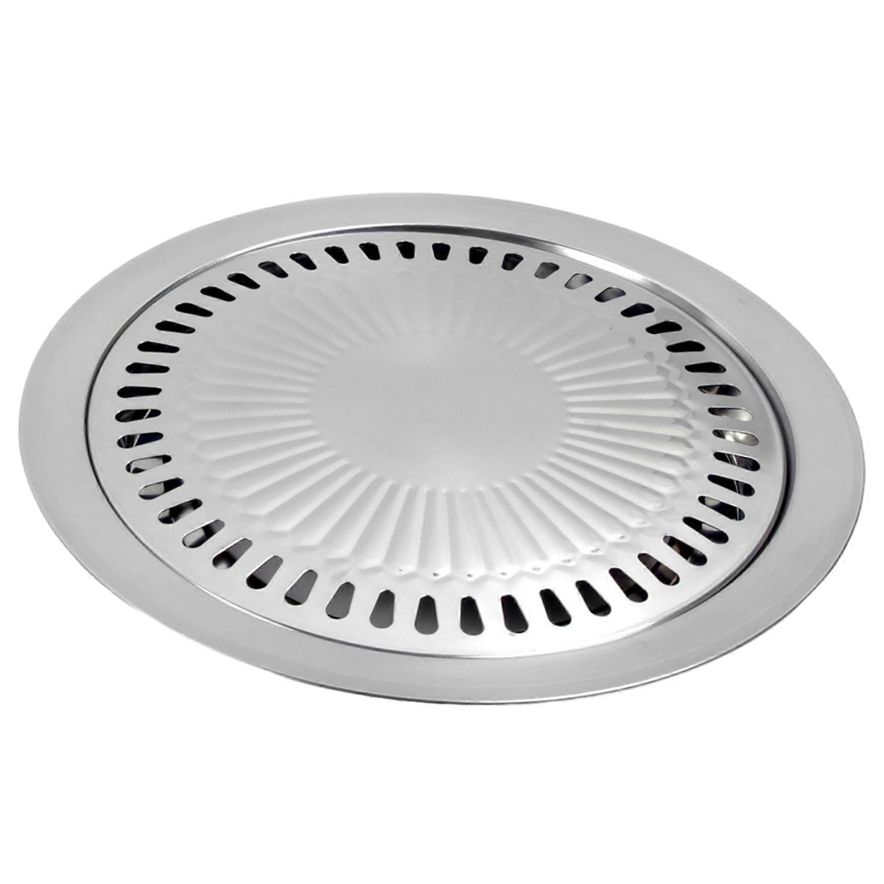 12 Inch Korean BBQ Grill Pan, NonStick Stainless Steel for Indoor Outdoor Grilling and Easy Clean