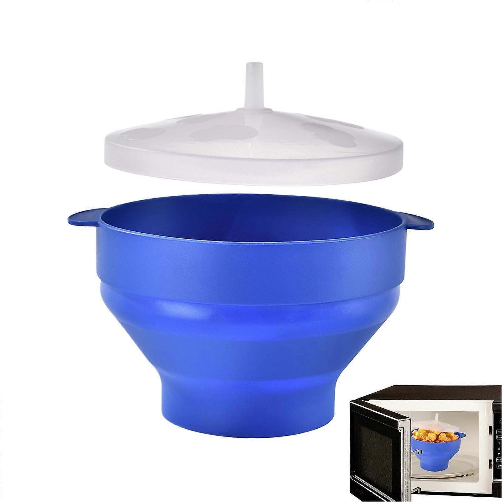 Microwave Popcorn Popper Silicone Heat Resistant Collapsible Bowl with Lid Blue
