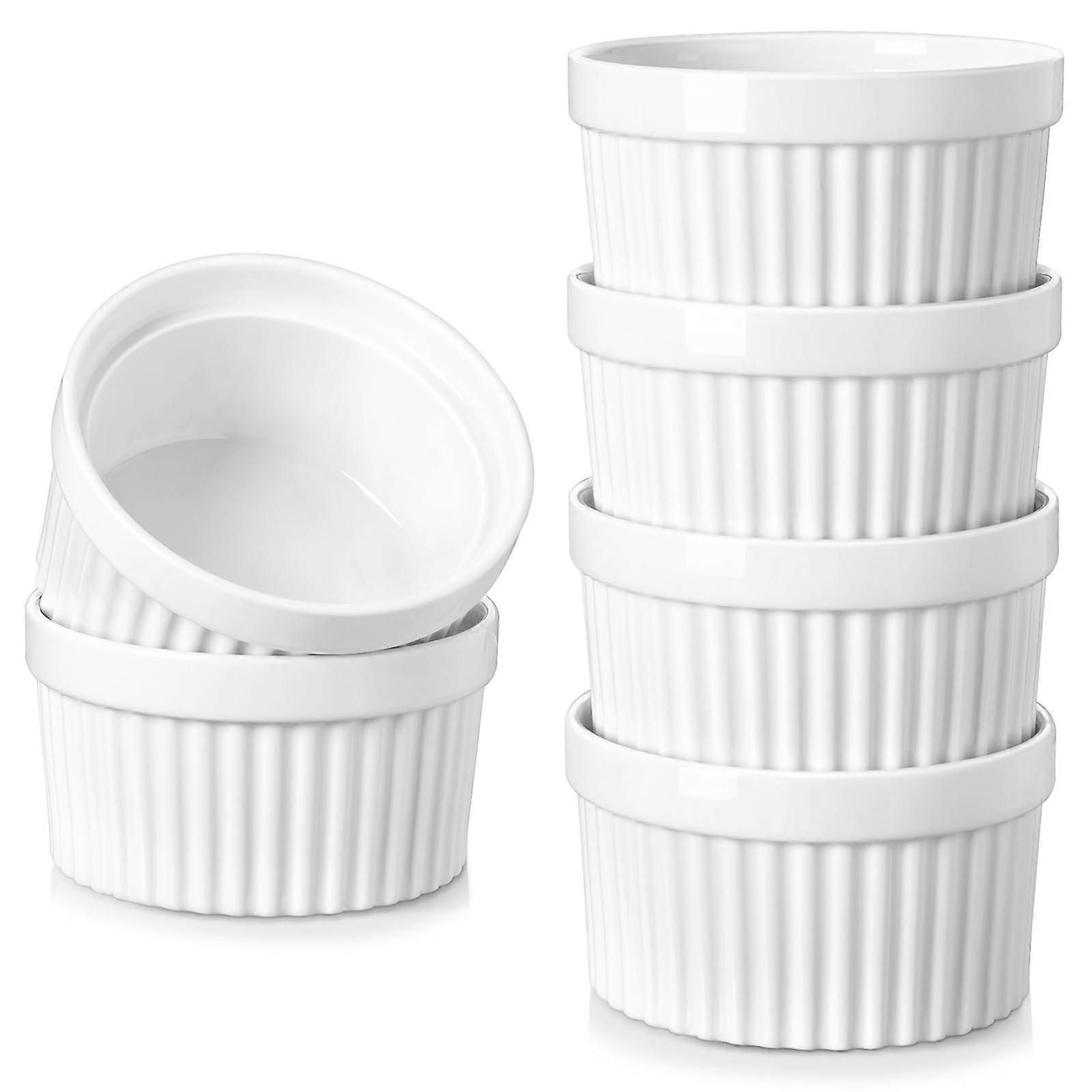 12 oz Porcelain Ramekins Set of 6, Oven Safe White Souffle Cups, ChipResistant and Stackable