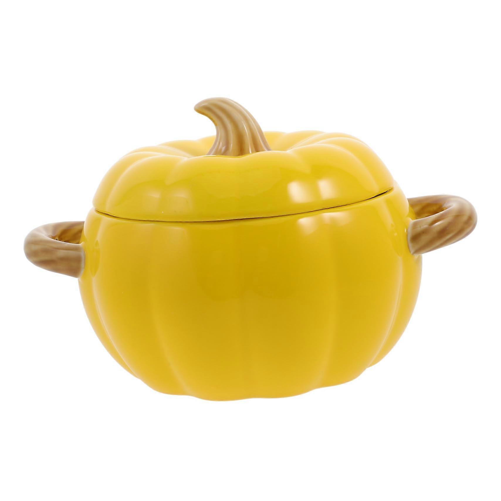 Pumpkin Soup Bowl with Lid Dual Handle Ceramic Serving Pot for Halloween and Thanksgiving