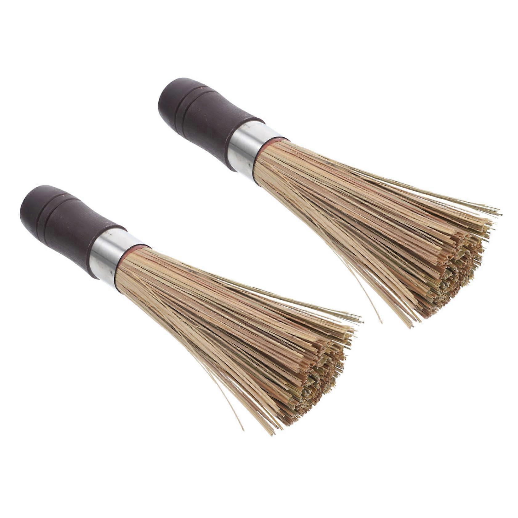 2pcs Bamboo Wok Brush Long Handle Heat Resistant Natural Kitchen Scrub for Pots and Pans