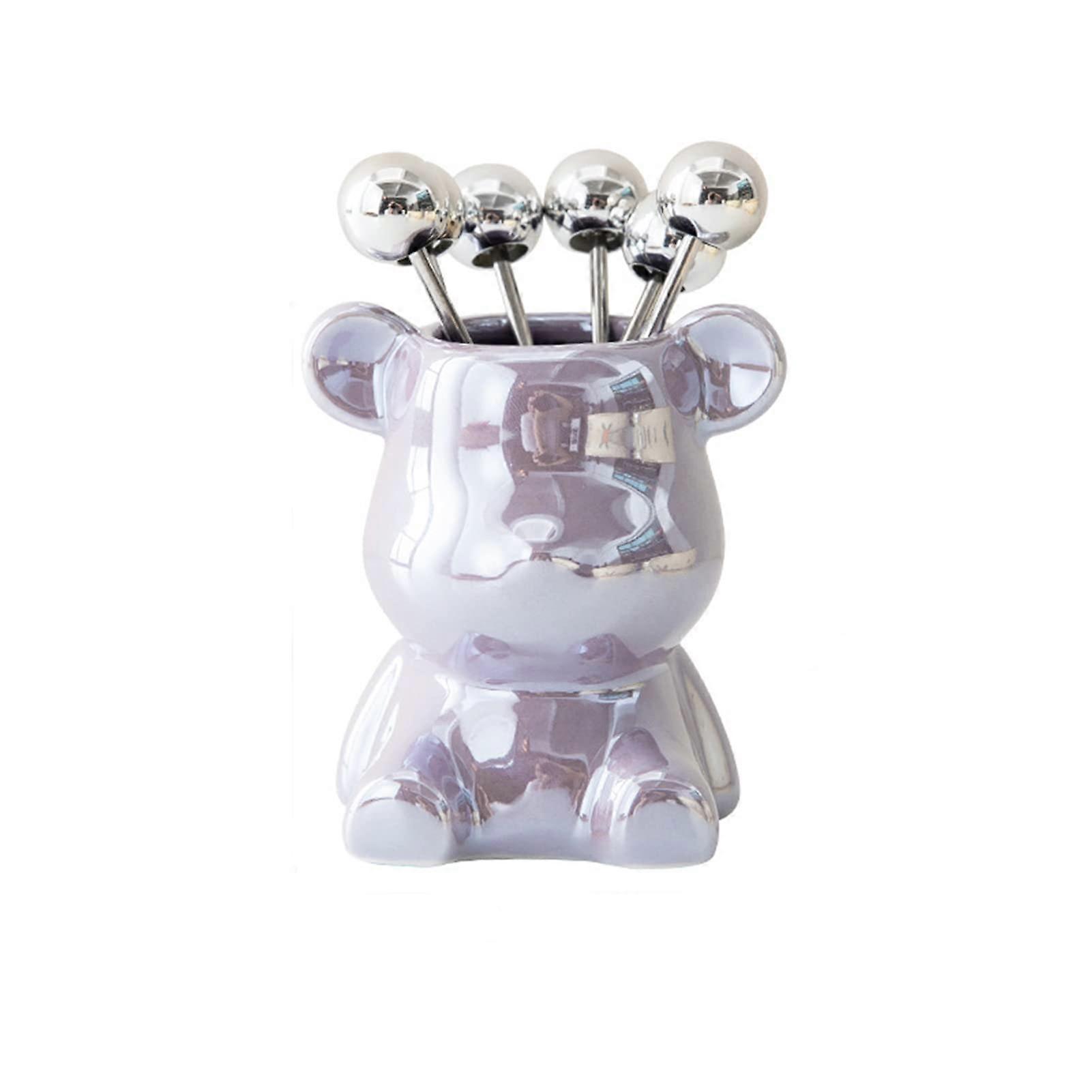6PCS Stainless Steel Appetizer Forks Set with Cute Bear Design, Mini Cocktail Fruit Forks for Party, Purple