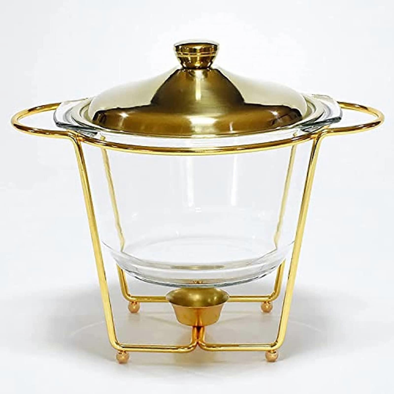 Chafing Dish 4L Glass Pan Buffet Stainless Steel Chafer Set Gold Frame for Wedding Catering