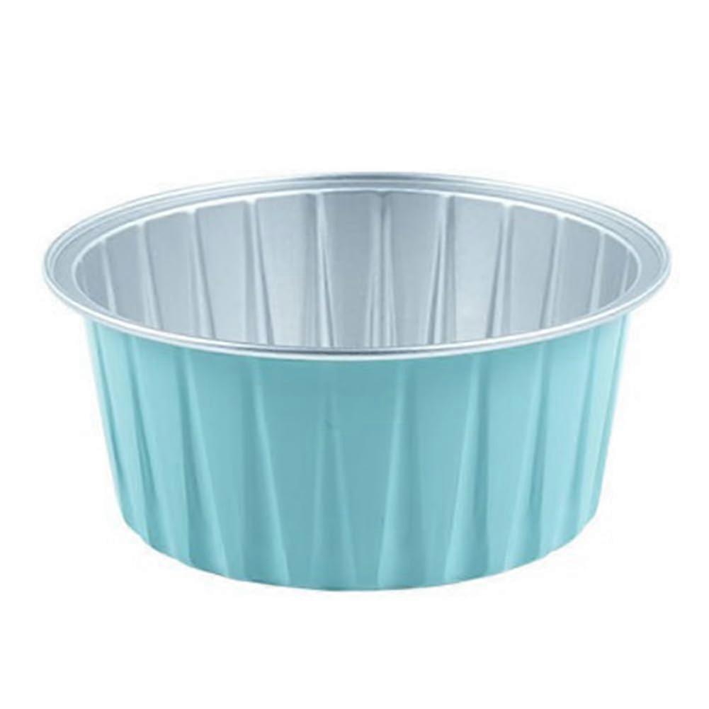 Aluminum Foil Baking Cups with Lids, Oven Air Fryer Safe Pudding Molds, Recyclable Blue Bowls