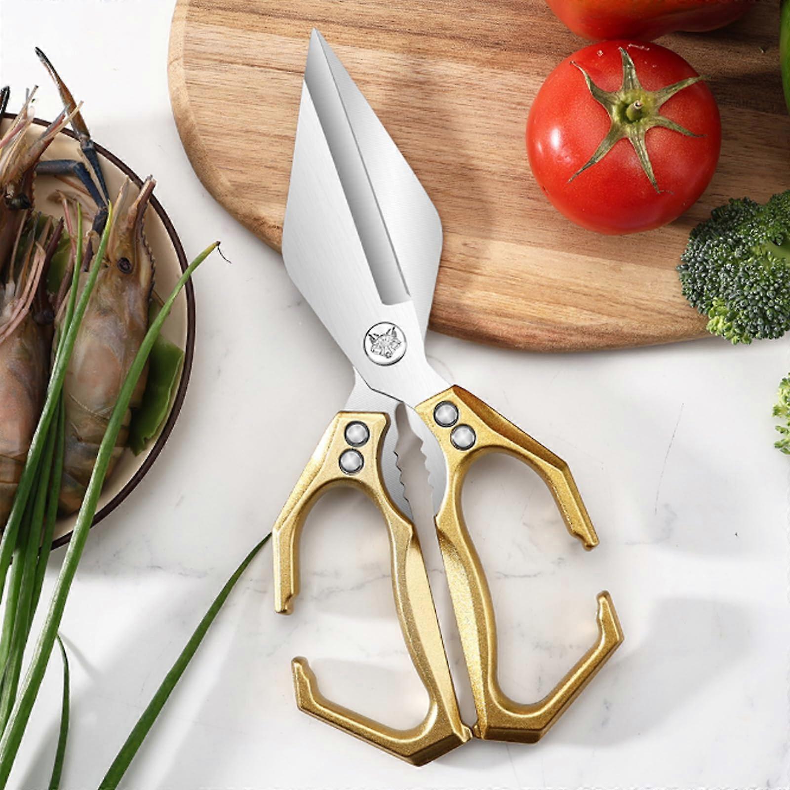 HeavyDuty Stainless Steel Kitchen Shears with Ergonomic Grip for Meat, Vegetables and Nuts (Gold)