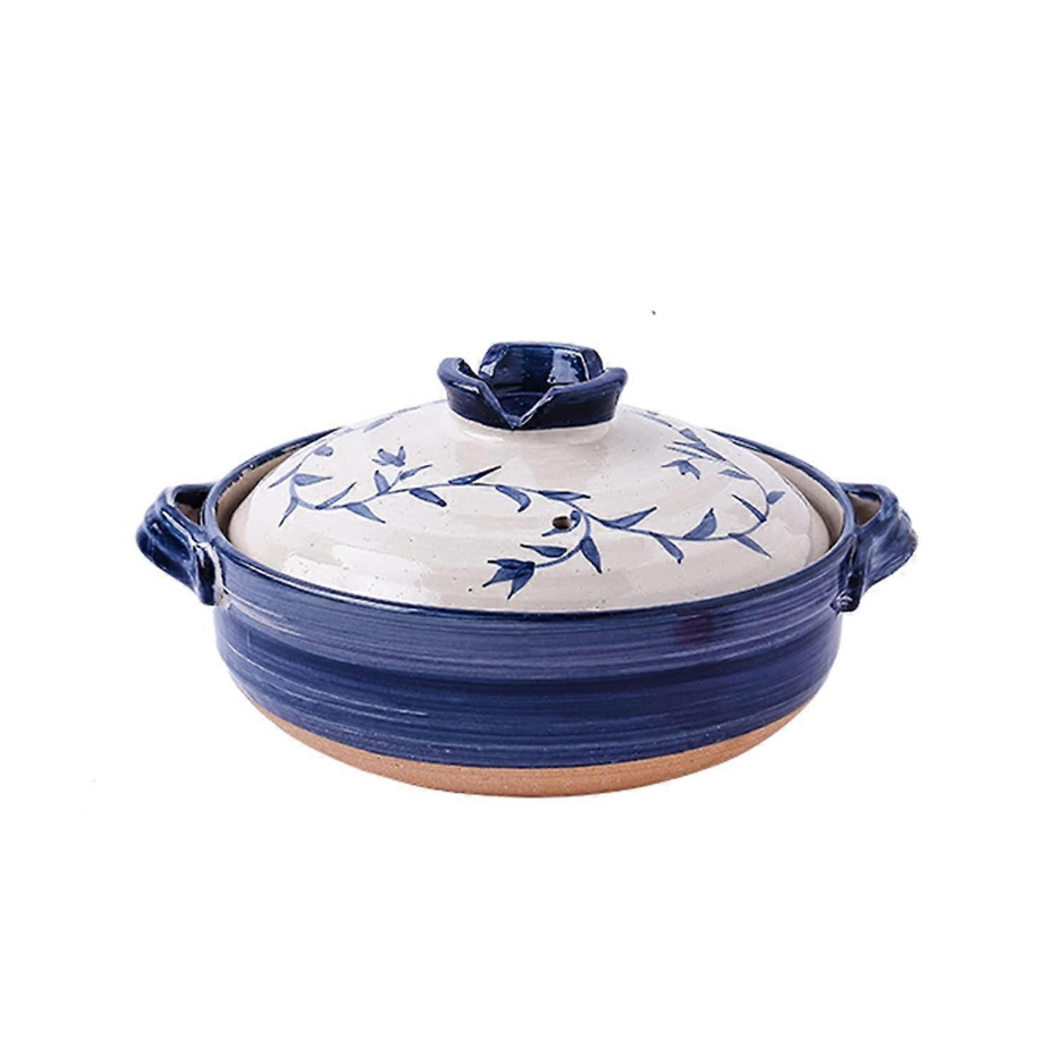 Japanese Clay Casserole Pot 1.6L with Lid for Stew and Soup, Balanced Heat, Decorative Glaze