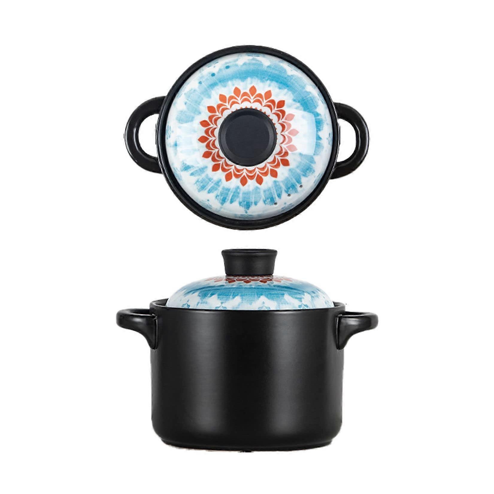 Ceramic Casserole Dish with Lid 1.5 Litre Round Stoneware Soup Pot with Double Handle