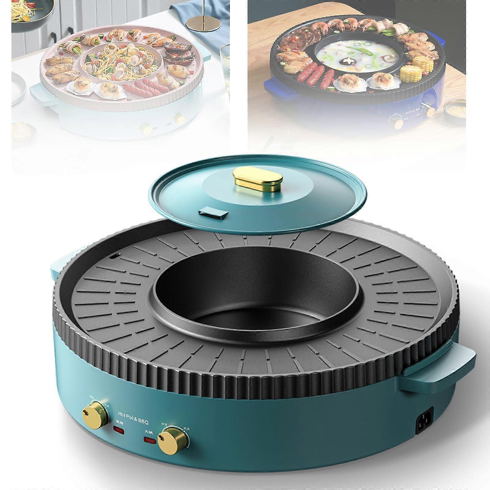 Smokeless Electric Indoor Grill and Hot Pot Combo with Dual Temperature Control and NonStick Surface