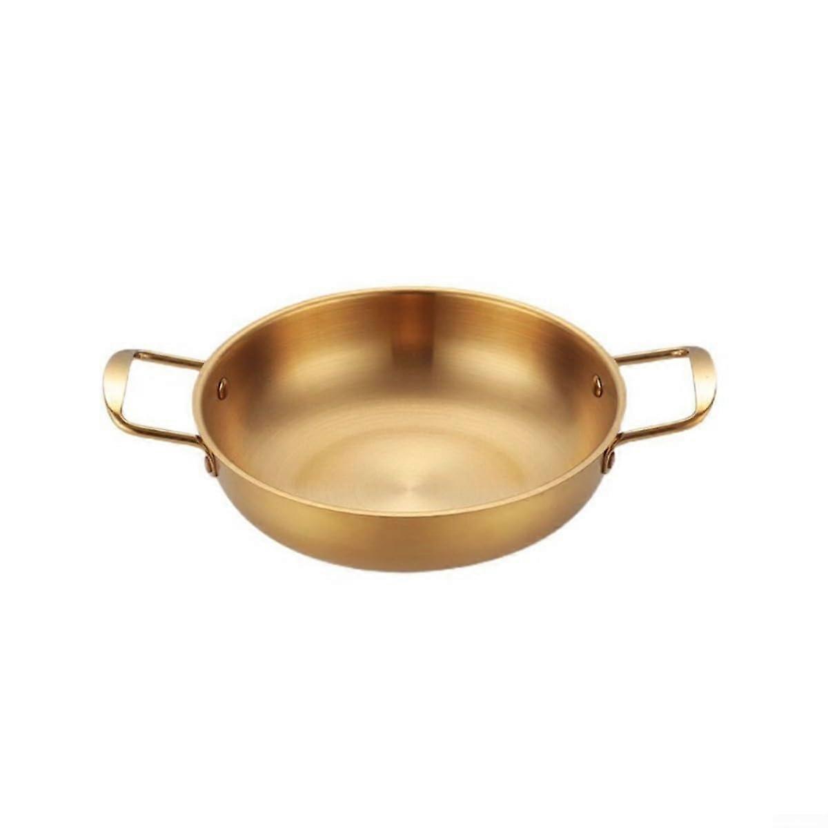 Gold 20cm Stainless Steel Paella Pan with Flat Bottom, RustResistant, for Stovetop and Oven