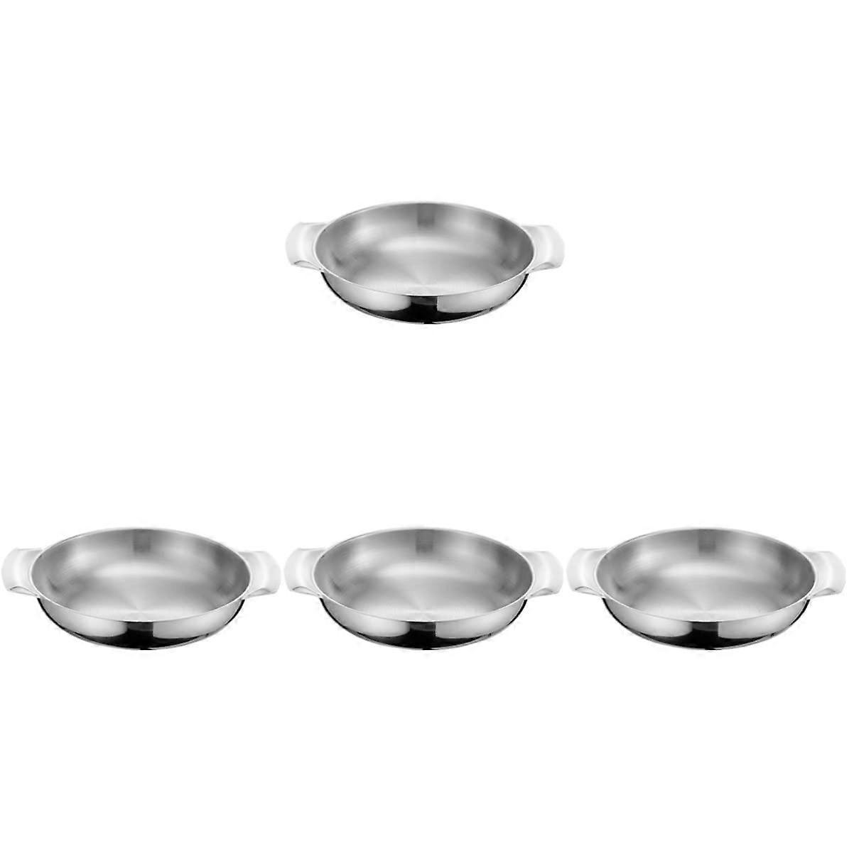 16cm Stainless Steel Paella Pan with Double Handles, Flat Bottom Seafood Cooking Dish