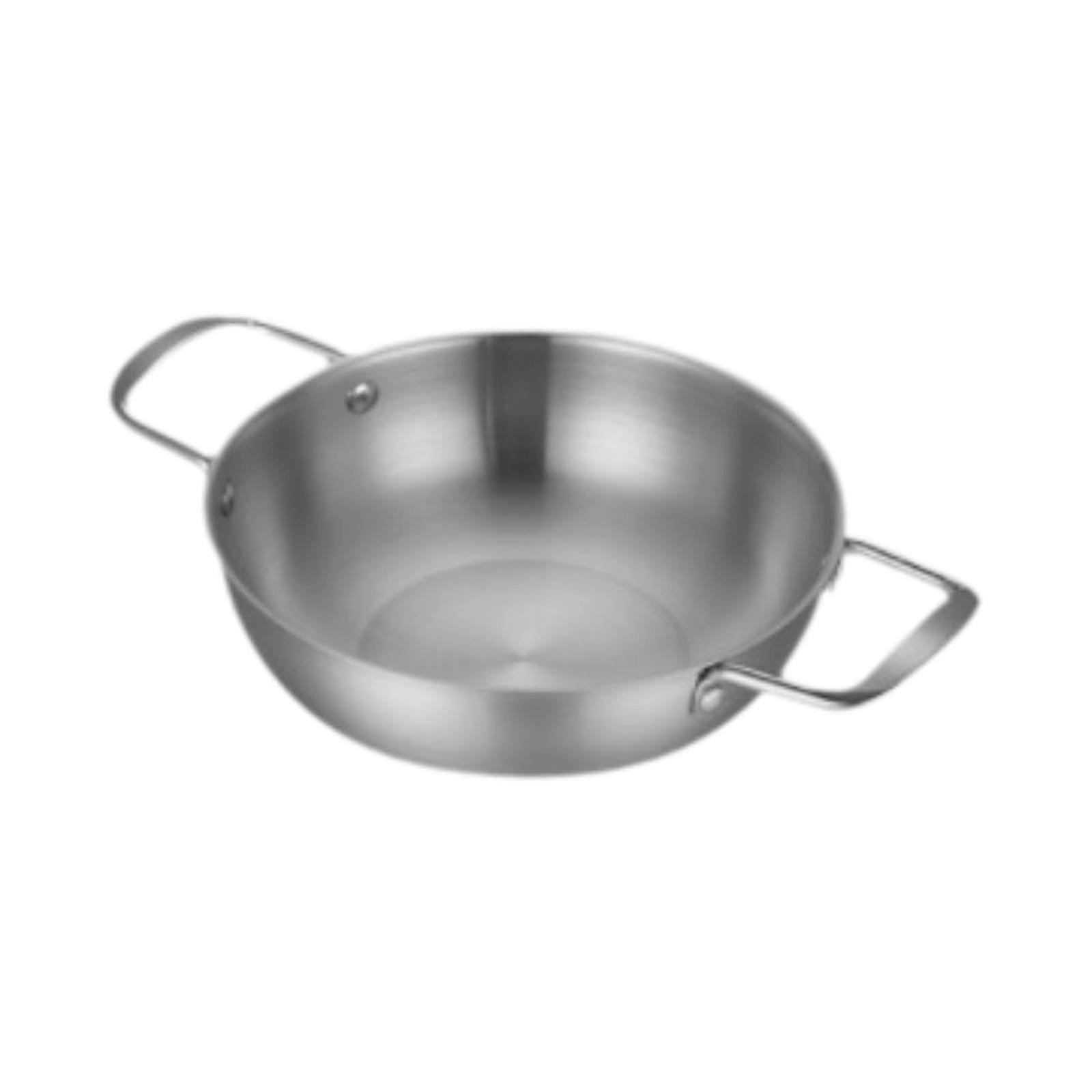 Stainless Steel Paella Pan 22cm with Double Handles for Ramen, Curries and Camping Use