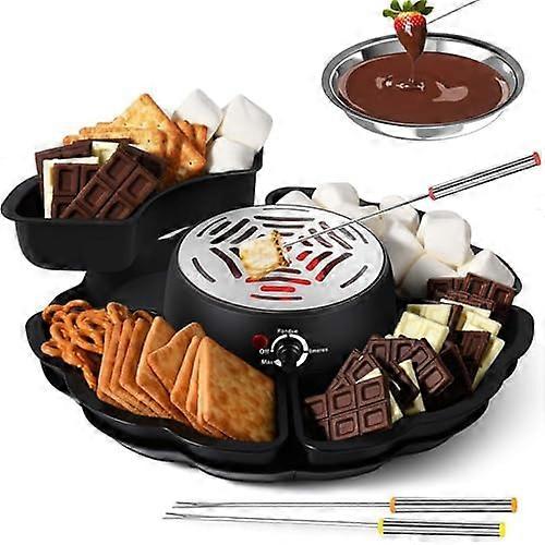 Electric fondue pot designed for effortless dessert entertaining Key benefits Create memorable gatherings: Serve warm, dippable chocolate for game nights, movie marathons, family dessert nights, or small parties. Guests of all ages can join the fun. Consistent, burn results: Two settings—melting for quickly liquefying chocolate and heating to maintain the ideal consistency—keep chocolate smooth without scorching. Simple cleanup and storage: The unit disassembles easily and has dishwashersafe removable components for a quick, hassle wash after use. What you get and how it works Includes a melting base, a removable bowl, and two forks so two guests can dip at once. Use the melting setting to turn solid chocolate into a smooth dip, then switch to the heating setting to hold that texture throughout your event. Compatible with a wide range of dippers—fruits, pretzels, marshmallows, candies—so you can menus to suit any crowd. Practical features that matter Interactive and familyfriendly: Safe for social use and encourages shared activity during gatherings. Designed for convenience: Removable parts make serving and cleaning straightforward; dishwashersafe components speed up cleanup. Reliable performance: Heating control prevents overheating and maintains serving temperature. Suggested uses Game night dessert station: Keep chocolate ready for quick dipping between rounds. Movie marathon : Set the pot on low heat to maintain readytodip chocolate for hours. Family celebration or small party: Offer a variety of dippers and let guests serve themselves for an engaging dessert option. What makes it stand out Combines quick melting and steady heating in one compact electric unit. Readytouse setup with included forks and a removable bowl for easy serving and cleaning. Simple to operate, easy to clean, and built for shared moments—an electric fondue pot that turns ordinary desserts into an interactive centerpiece.