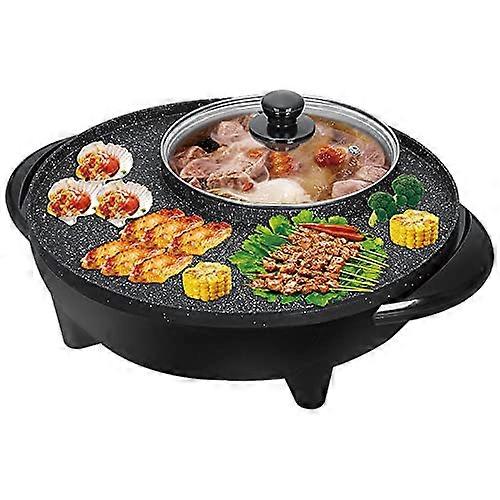 2 in 1 Electric Hot Pot and Grill – Quality, Practical Design, Reliable Performance Enjoy the flexibility of cooking multiple dishes at once with this 2 in 1 electric hot pot and grill. Built for durability and convenience, it is ideal for family meals, social gatherings, and everyday home cooking. Key Features and Benefits Reliable Material Constructed from quality thick cast aluminum and ABS, this appliance offers exceptional strength, heat resistance, and longlasting performance. The materials are safe, healthy, and environmentally friendly, ensuring peace of mind for you and your family. Tempered Glass Lid for Safer Cooking Comes with a durable tempered glass lid. When cooking soups or hot pot, covering the lid speeds up cooking and retains heat. For grilling, it helps prevent oil and hot liquid splashes, keeping your cooking experience cleaner and safer. The clear glass allows you to monitor food without lifting the lid. Five Adjustable Heat Settings Features a simple control switch with five precise heat levels, allowing you to select the temperature for different dishes. Powered by a stable 1500W heating system, it cooks hot pot and grilled foods quickly and evenly. Comfortable and Safe Design Equipped with two curved handles to protect your hands from burns during handling. The bottom heat sink promotes faster cooling after use and helps prevent accidental overheating, making it safe for home kitchens. Practical Size and Versatile Use Compact enough for countertop use yet large enough to prepare meals for several people. for family dinners, hosting friends for a barbecuestyle meal, or enjoying a hot pot night at home. Suggested Use Scenarios 1. Family Hot Pot Night – Prepare broth in the hot pot section while grilling meat and vegetables at the same time, allowing variety and efficiency for dinners. 2. Weekend BBQ at Home – Use the grill section to cook skewers, seafood, or burgers while keeping side dishes warm in the hot pot. 3. Small Gatherings – Offer guests both grilling and soup options in one appliance, saving time and space in the kitchen. With its durable build, adaptable temperature control, and safe design features, this 2 in 1 electric hot pot and grill is an cooking solution for anyone who values efficiency, versatility, and reliable performance in their kitchen.