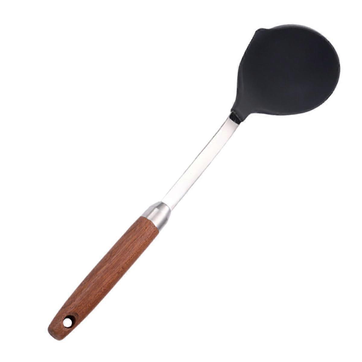Silicone Soup Ladle with Stainless Steel Long Handle, Heat Resistant NonScratch Head, Hanging Hole