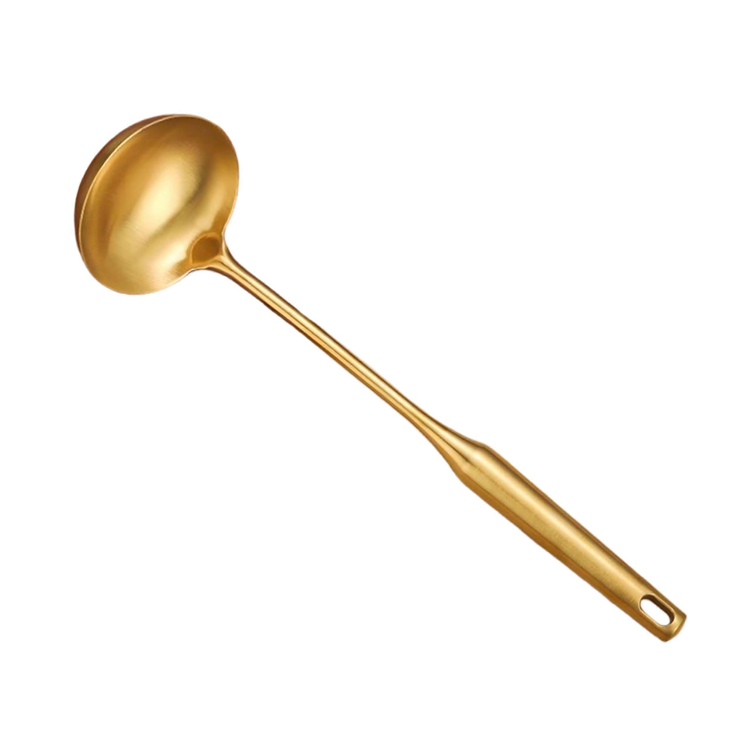 304 Stainless Steel Gold Soup Ladle 13.8 Inch Long Handle Heat Resistant Deep Bowl for Serving