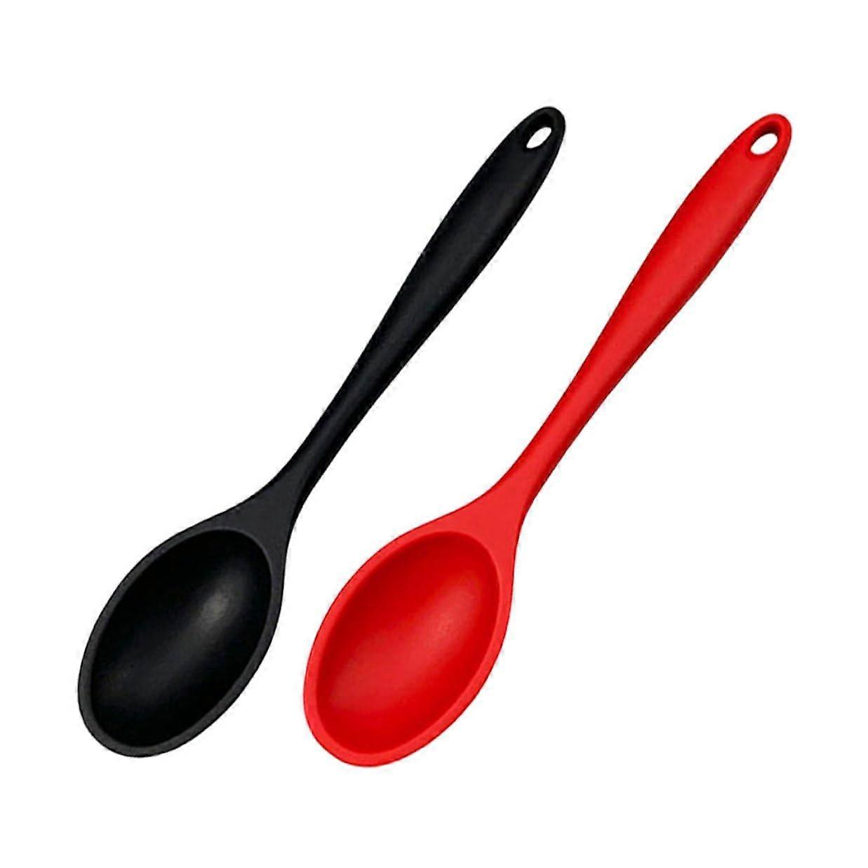 2Pcs Silicone Soup Ladle and Serving Spoon Set, Long Handle Heat Resistant NonScratch Utensils