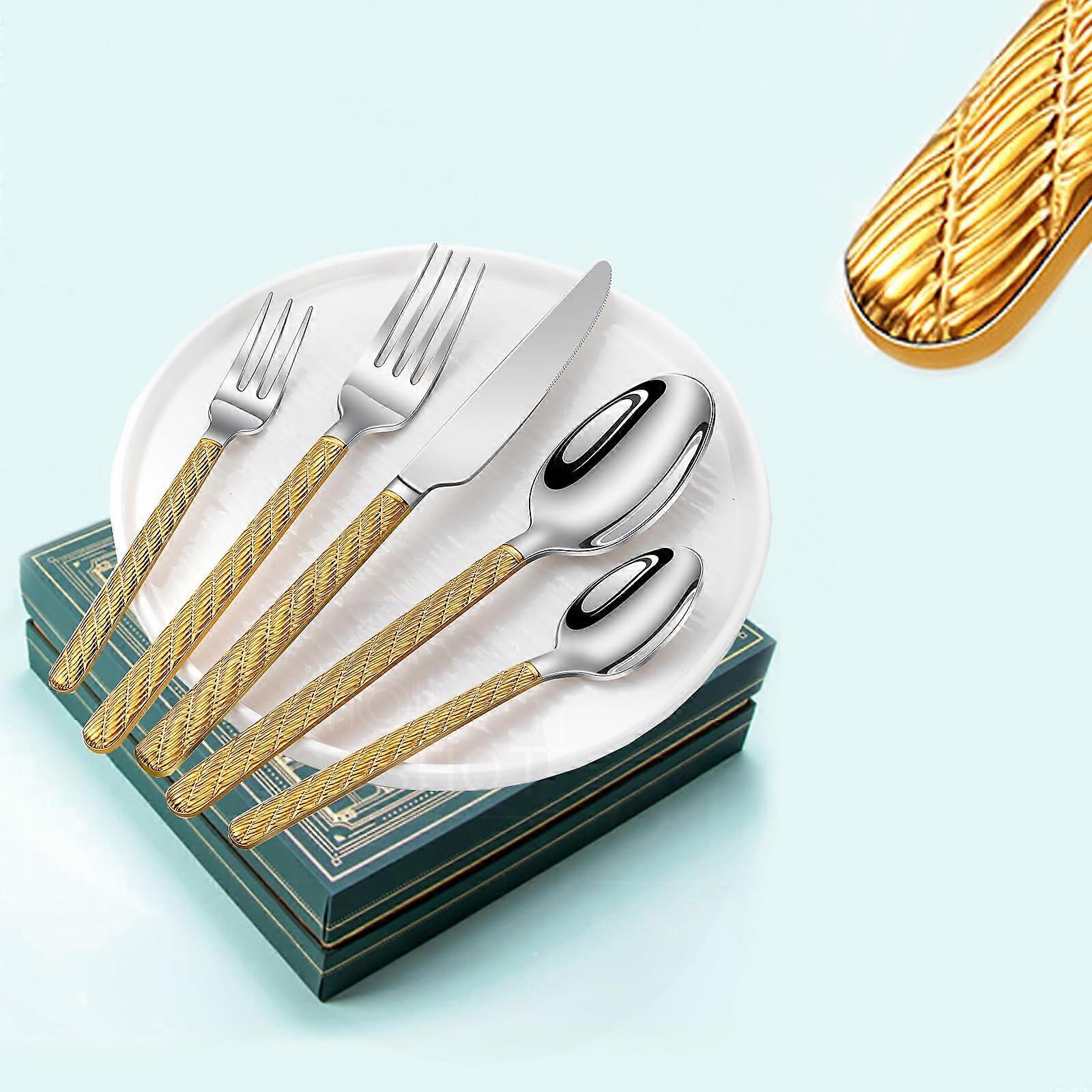 60Piece Gold Silverware Set with Hammered Twist Handles, 1810 Stainless Steel Flatware for 12