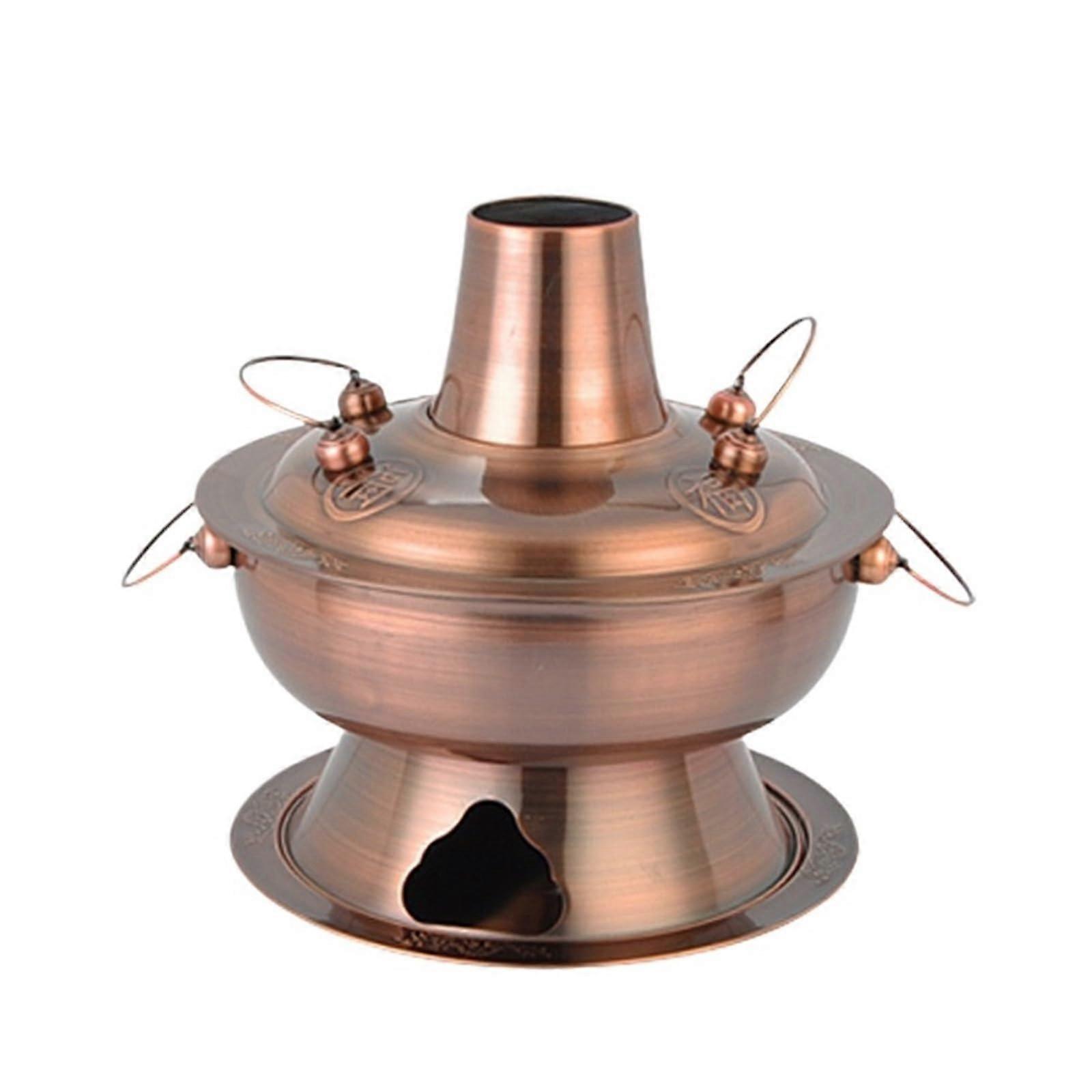 Vintage Stainless Steel Charcoal Shabu Hot Pot Cooker 34cm with Lid and Antique Design