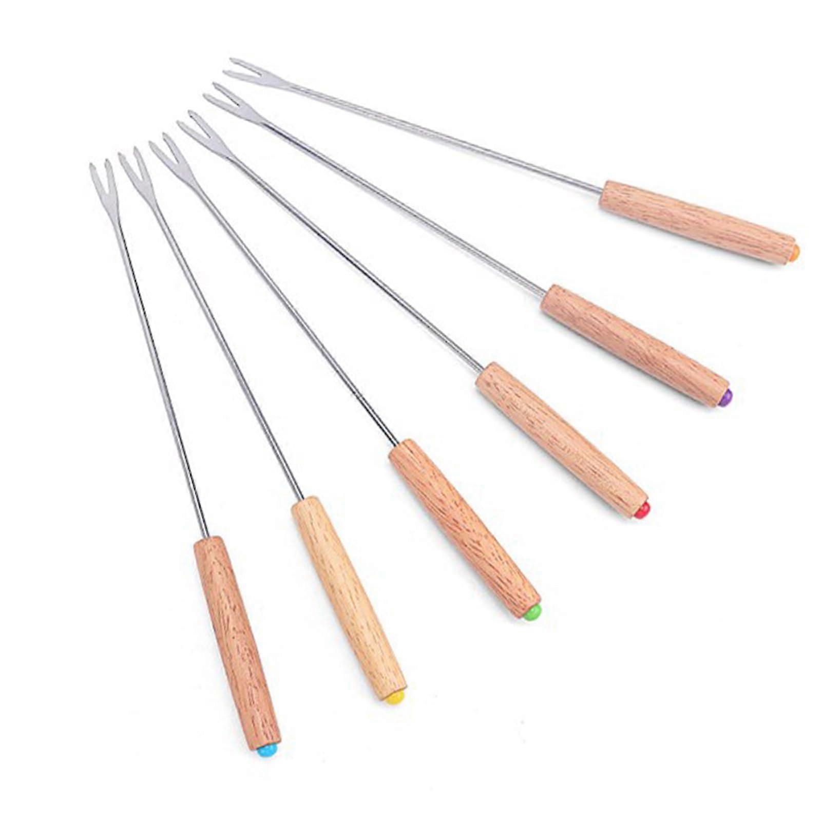 6 PCS Stainless Steel Fondue Forks with Wooden Handles, Color Coded for Cheese and Chocolate