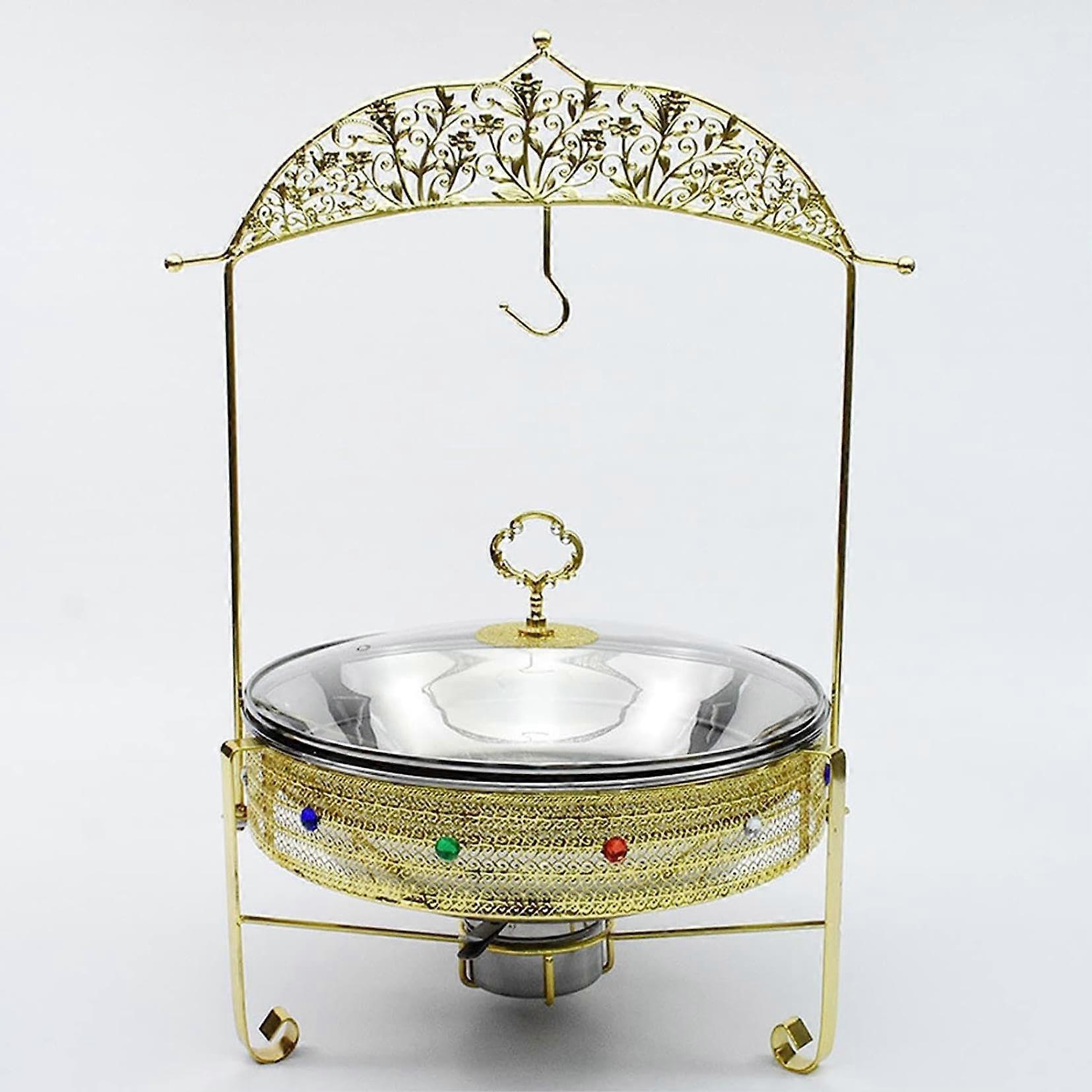 Buffet Water Dish and Plate Set – Stainless Steel Food Heater with Lid Keep your food fresh, warm, or chilled throughout any event with this versatile stainless steel buffet set. Designed for convenience, performance, and style, it is ideal for parties, events, weddings, banquets, picnics, and more. Key Features and Benefits: AllinOne Serving Solution: Includes stainless steel food bowls, hook frames, water dish, and fuel rack to heat or cool food as needed. for buffet lines or table service. Dual Temperature Control: Use the water dish with hot water and fuel for serving warm meals, or add ice to instantly keep salads, desserts, and cold dishes fresh. Construction: Made from quality stainless steel with a smooth finish for a stylish look and longlasting durability. Rustresistant, safe for food contact, and environmentally friendly compared to disposables. Heat and Cold Resistant: Maintains serving temperature without warping or fogging, ensuring food tastes fresh throughout your event. Easy to Clean: Hand wash in hot soapy water, rinse thoroughly, and dry immediately to maintain shine. Avoid harsh detergents, salt solutions, and acidic foods to protect the surface. Practical Applications: 1. Wedding Reception Dinner: Keep main courses piping hot for guests, or store chilled desserts on the same table with ease. 2. Outdoor Picnic or Catering Event: Maintain safe temperatures despite outdoor conditions, ensuring your food remains appetizing from start to finish. 3. Birthday or Family Gathering: Provide both hot and cold dishes in one unit, simplifying serving logistics and reducing the need for multiple appliances. Material and Performance: Stainless Steel: Durable and resistant to rust and corrosion for longterm use. Size: Round pot design suitable for various dish types, from soups and stews to salads and cold platters. Compatibility: Works seamlessly for professional catering setups or home parties. This buffet water dish and plate set offers a reliable, attractive solution for presenting and maintaining food quality at any event, combining elegant style with functional temperature control.