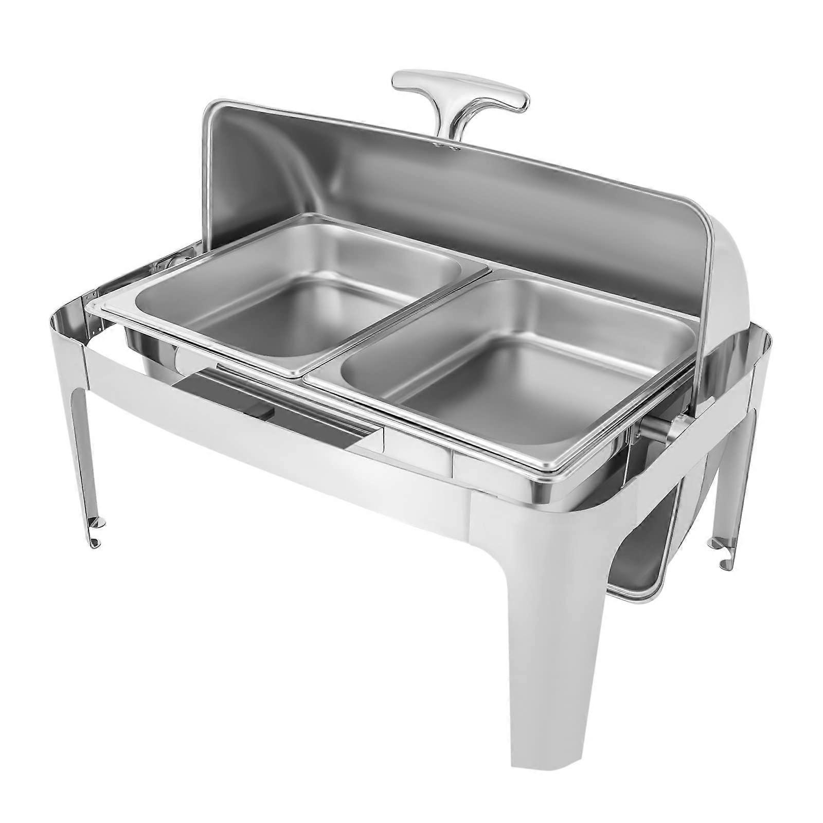 Chafing Dish Buffet Set Stainless Steel Food Warmer with Roll Lid Dual Compartments for Catering