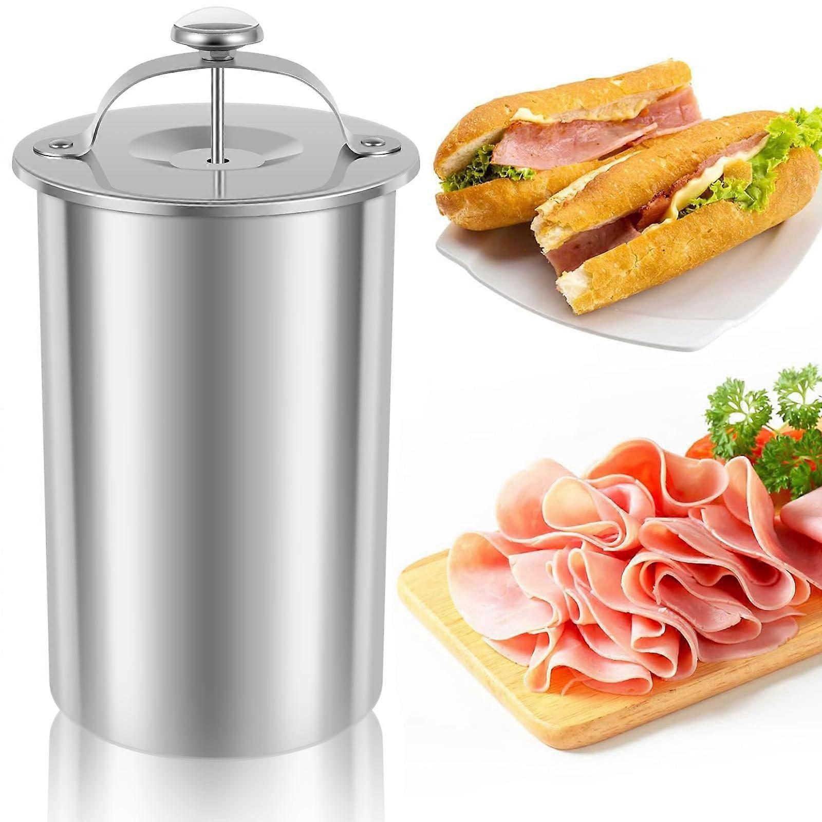 Homemade Ham and Meat Press Cooker – Food Grade Stainless Steel • Efficient and Convenient: Make your own fresh, healthy ham or lunch meat right at home. This tool allows you to prepare large batches quickly, helping you save time while ensuring full control over the ingredients and flavors. for those who want preservative, customized meals. • Durable Food Grade 304 Stainless Steel: Crafted from quality, foodsafe stainless steel that is rustresistant and able to withstand temperatures. Easy to maintain and built for longterm use. Includes a builtin thermometer for precise temperature monitoring, ensuring consistently delicious results every time. • Versatile Cooking Options: Suitable for a wide range of recipes including pork, beef, lamb, poultry, fish, and seafood. Easily create ham, meatloaf, corned beef, ground meat dishes, or stuffed specialties with a variety of fillings and sauces. • Easy to Clean: Smooth, polished surface inside and out for effortless cleaning. Simply wash with warm water and mild detergent, then dry thoroughly before storing. Designed for quick and hygienic maintenance. • Ideal for Home Chefs: for preparing familysized portions, storing readytoeat meals for the week, or creating special dishes for gatherings. Examples include making a classic sliced ham for sandwiches, preparing seafood loaf for dinner parties, or cooking seasoned chicken for salads and wraps. With this ham and meat press cooker, you can consistently produce healthy, flavorful homemade meals while enjoying the durability, versatility, and convenience of professionalgrade materials and design.