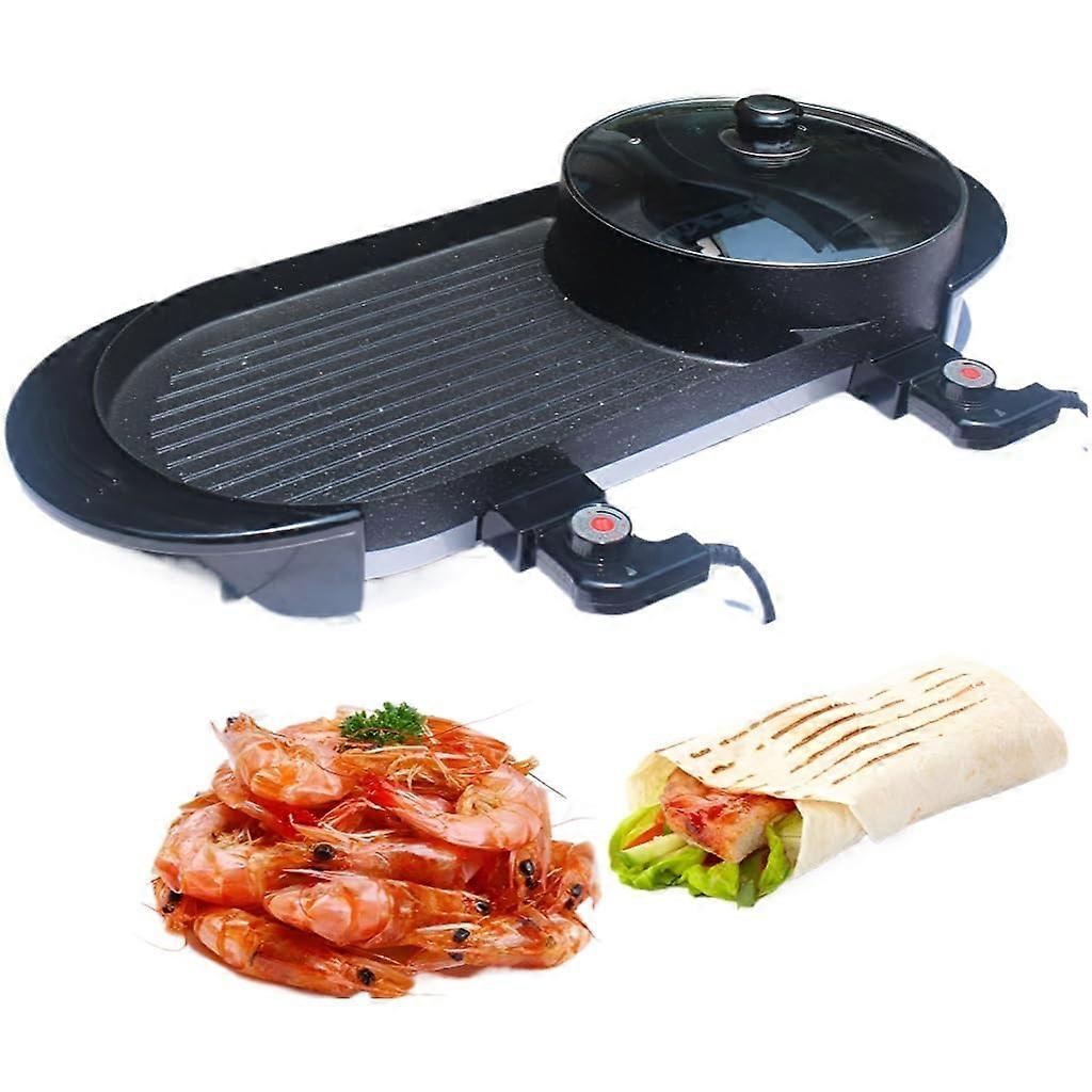 2in1 Electric Hot Pot and Grill Combo, Dual Side Design for Shabu Shabu, BBQ, Fast Even Heating