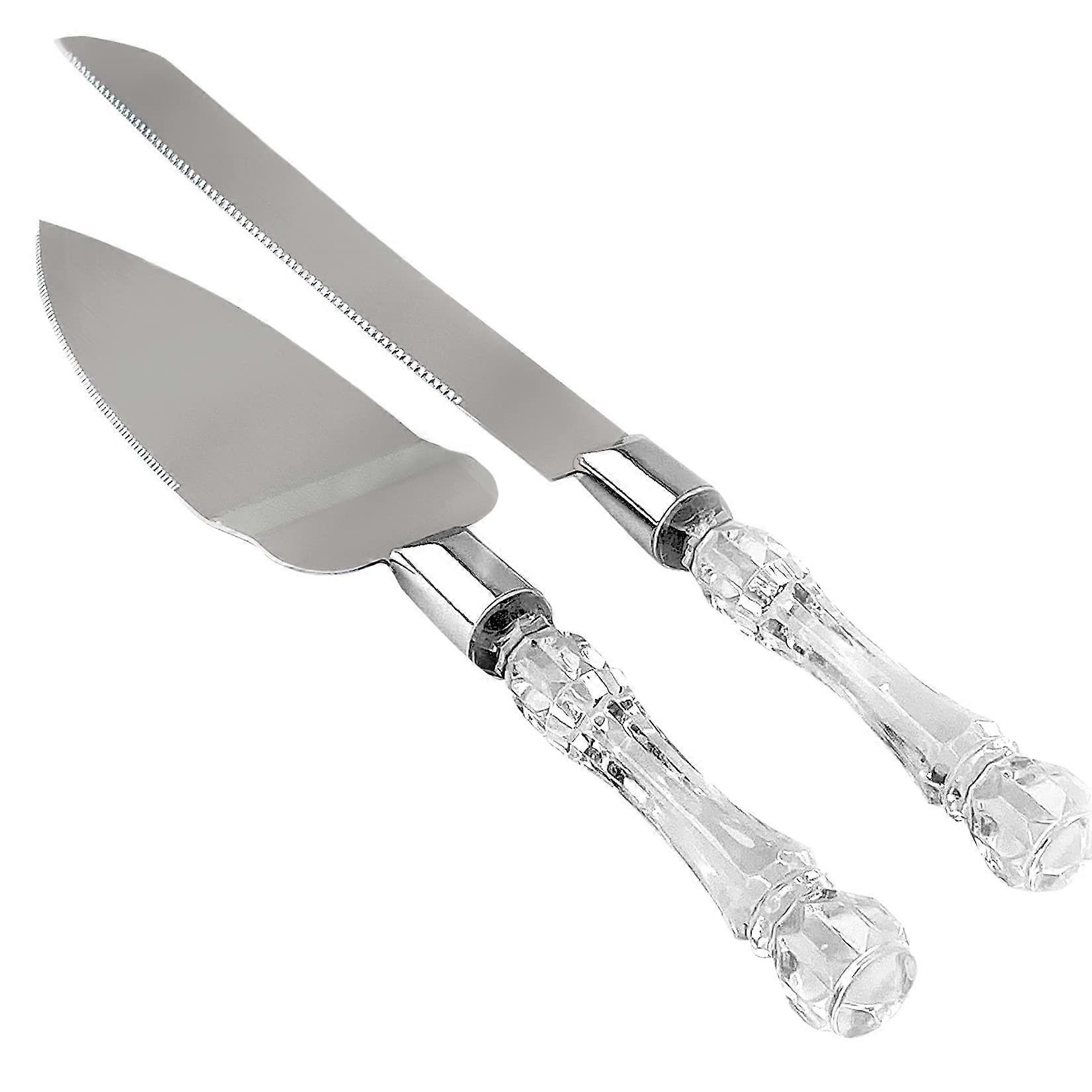 Wedding Cake Knife and Server Set with Serrated Blades, Crystal Handle, Stainless Steel Silver