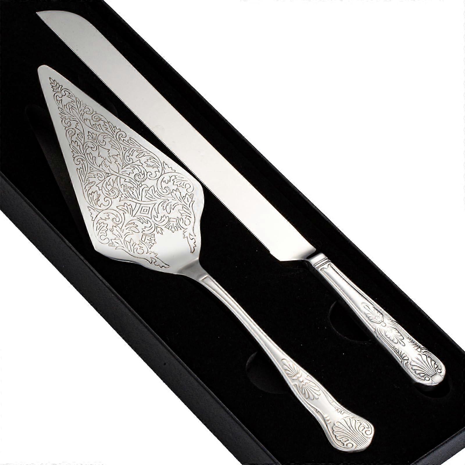 Vintage Wedding Cake Knife and Server Set, Elegant Stainless Steel with Serrated Blade, Silver
