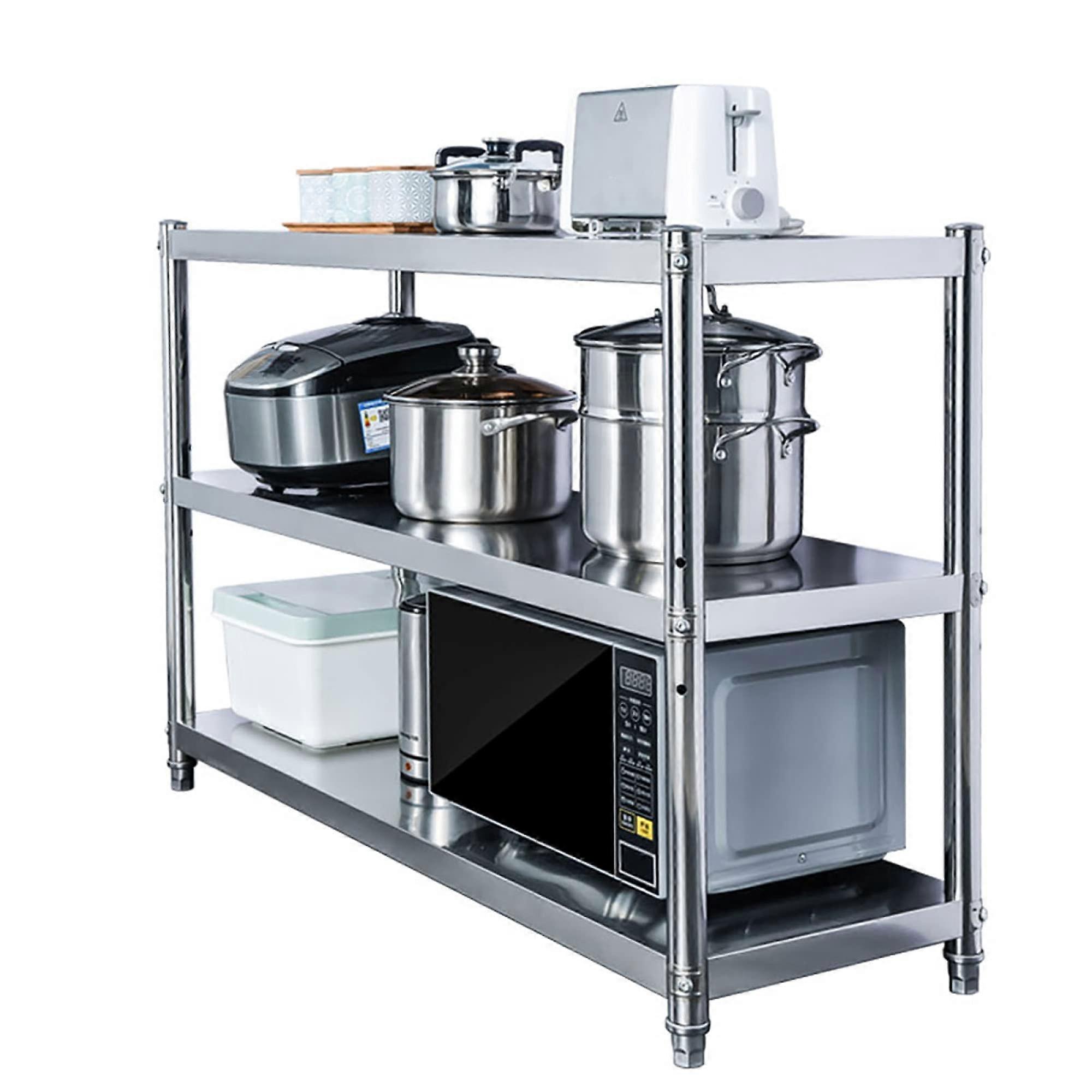 Microwave Oven Rack 3 Tier Stainless Steel Kitchen Storage Shelf 100cm Silver 35cm Depth