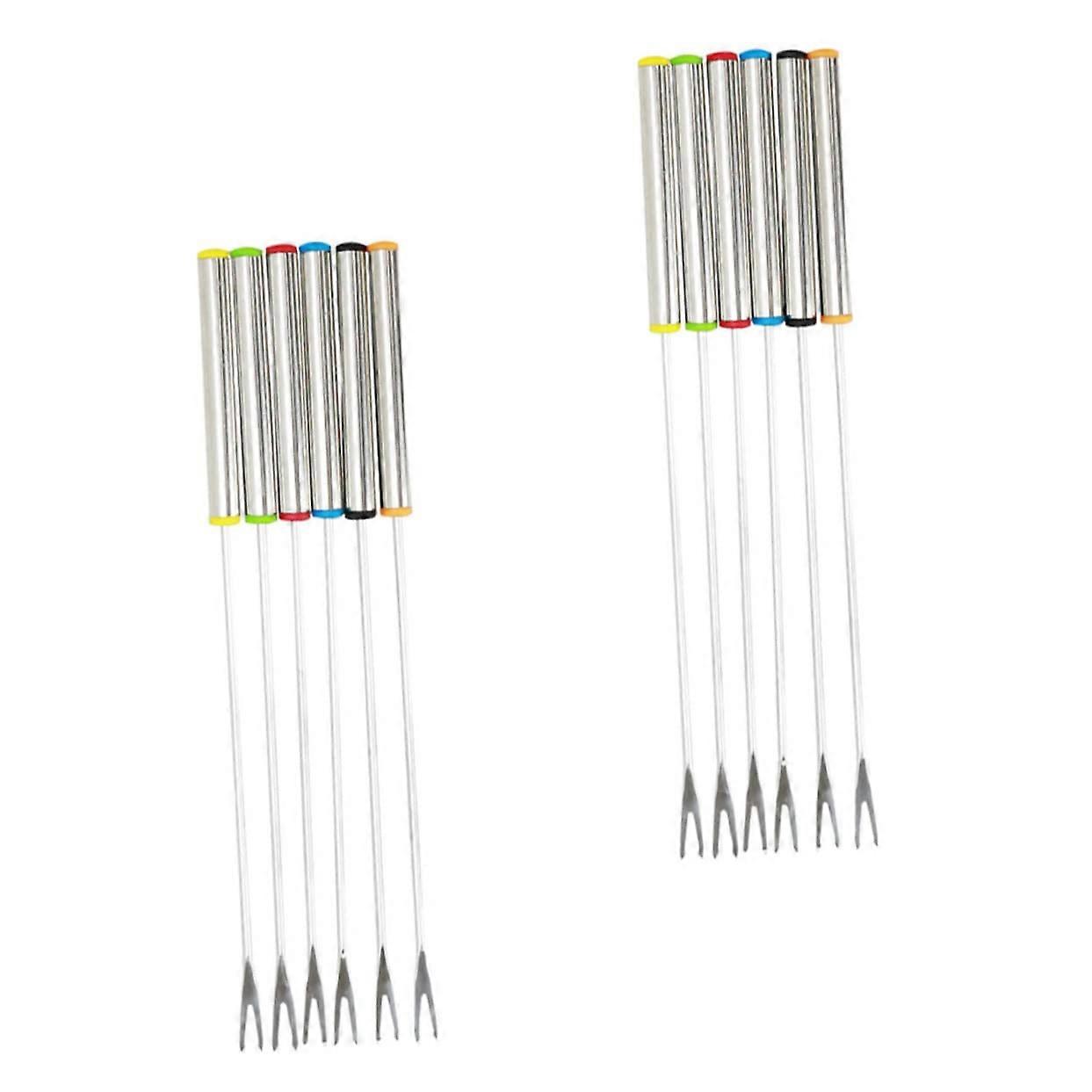 12pcs Stainless Steel Fondue Forks with Hammered Handles for Cheese Fruit Dessert and Cocktail Party