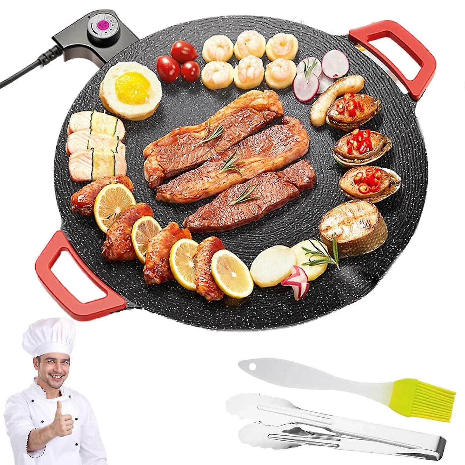 Smokeless Indoor Grilling Experience convenient, clean, and smokeless grilling right in your kitchen. The Electric Indoor Grill Pan lets you enjoy grilled meals without the hassle of charcoal or outdoor setups. Ideal for apartment living, small kitchens, or any space where traditional grilling is impractical. Versatile Cooking for Every Meal Whether you are preparing juicy steaks, tender chicken, fresh seafood, or crisp vegetables, this grill delivers consistent, flavorful results. Its design is for a wide range of dishes, from quick weeknight dinners to weekend gatherings. Powerful and Even Heating Equipped with a reliable heating element, the grill quickly reaches temperature for efficient cooking. Even heat distribution ensures every bite is cooked to , whether you are searing meat or lightly grilling vegetables. NonStick Ease and Quick Cleanup The nonstick surface minimizes food sticking and makes postcooking cleanup fast and simple. After grilling, just wipe away residue with a damp cloth—no scrubbing, no soaking required. Practical Everyday Use Prepare a complete dinner of grilled salmon, asparagus, and potatoes without leaving your kitchen. Host an indoor barbecue with burgers, skewers, and grilled corn—no smoke, no mess. for healthy meal prep by grilling lean proteins and fresh vegetables at home. Key Features Designed for smokeless indoor use Suitable for meats, seafood, vegetables, and more Fast heating with consistent temperature control Nonstick cooking surface for easy food release and cleanup Compact size for countertop use and easy storage This Electric Indoor Grill Pan offers the functionality and performance you need for effortless home grilling, making it an addition to your kitchen for yearround cooking.