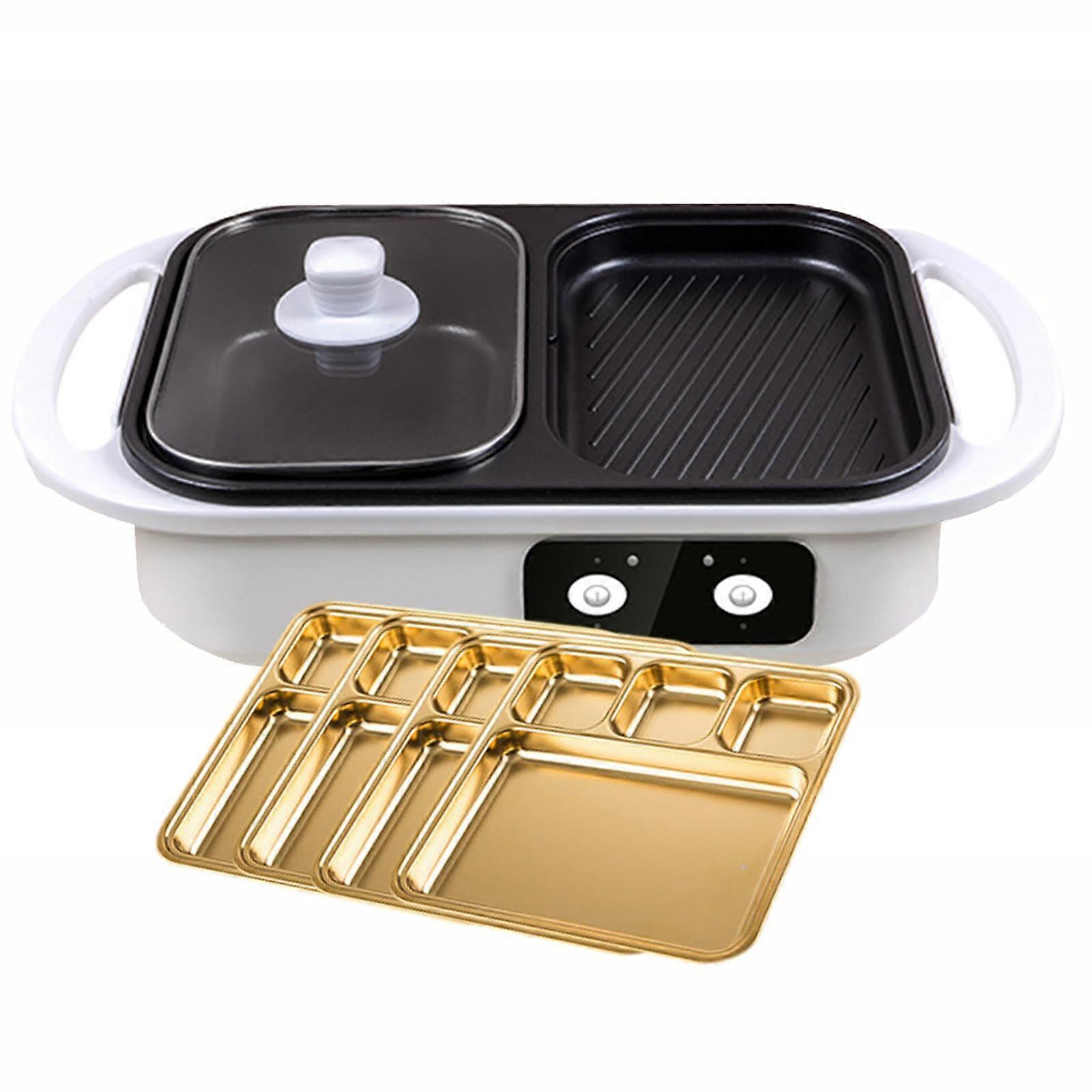2 in 1 Electric Grill and Hot Pot Cooker, NonStick Dual Zone Control for BBQ and Shabu