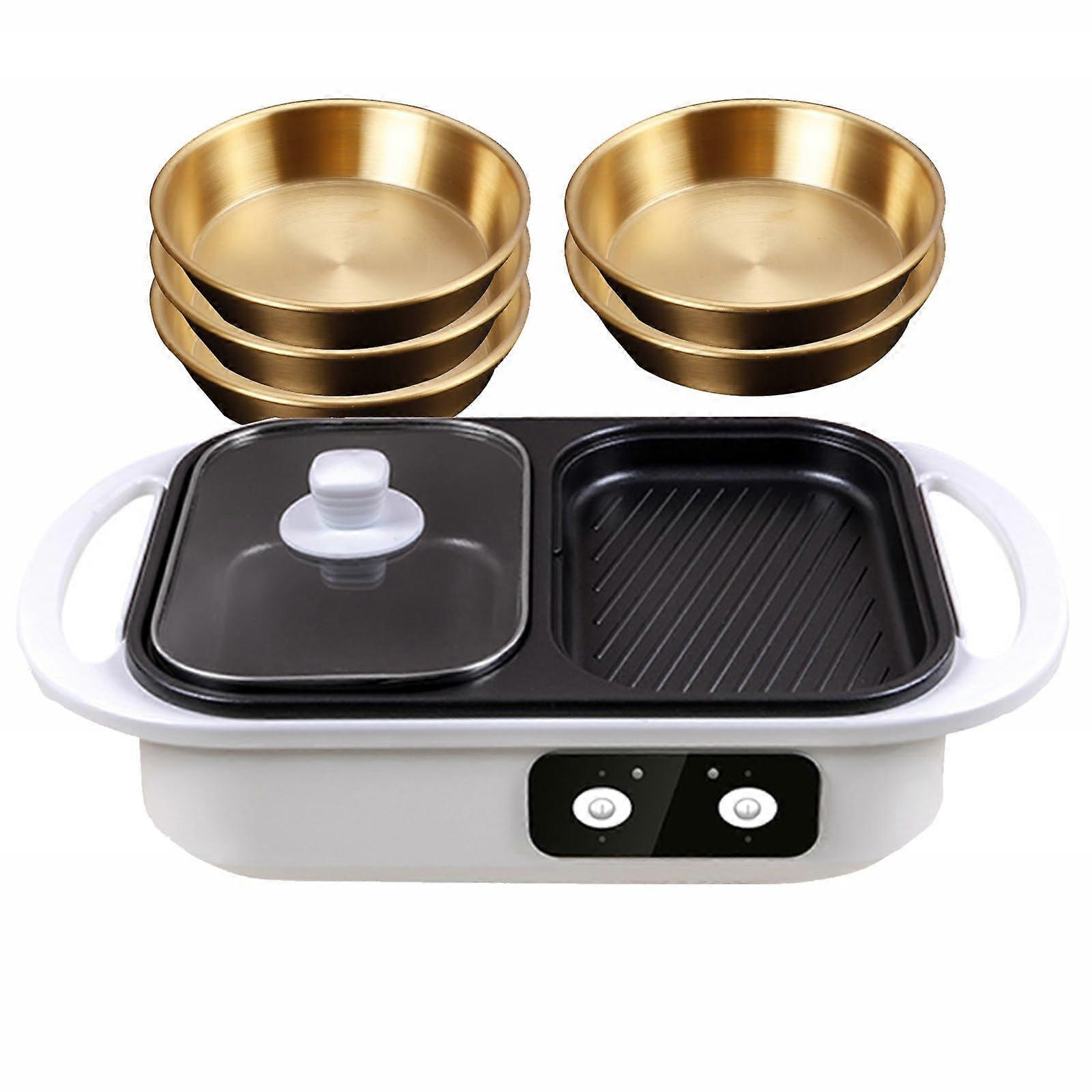 Electric Hot Pot Grill 2in1 Nonstick BBQ with Adjustable Temperature and Dual Cooking Zones, White