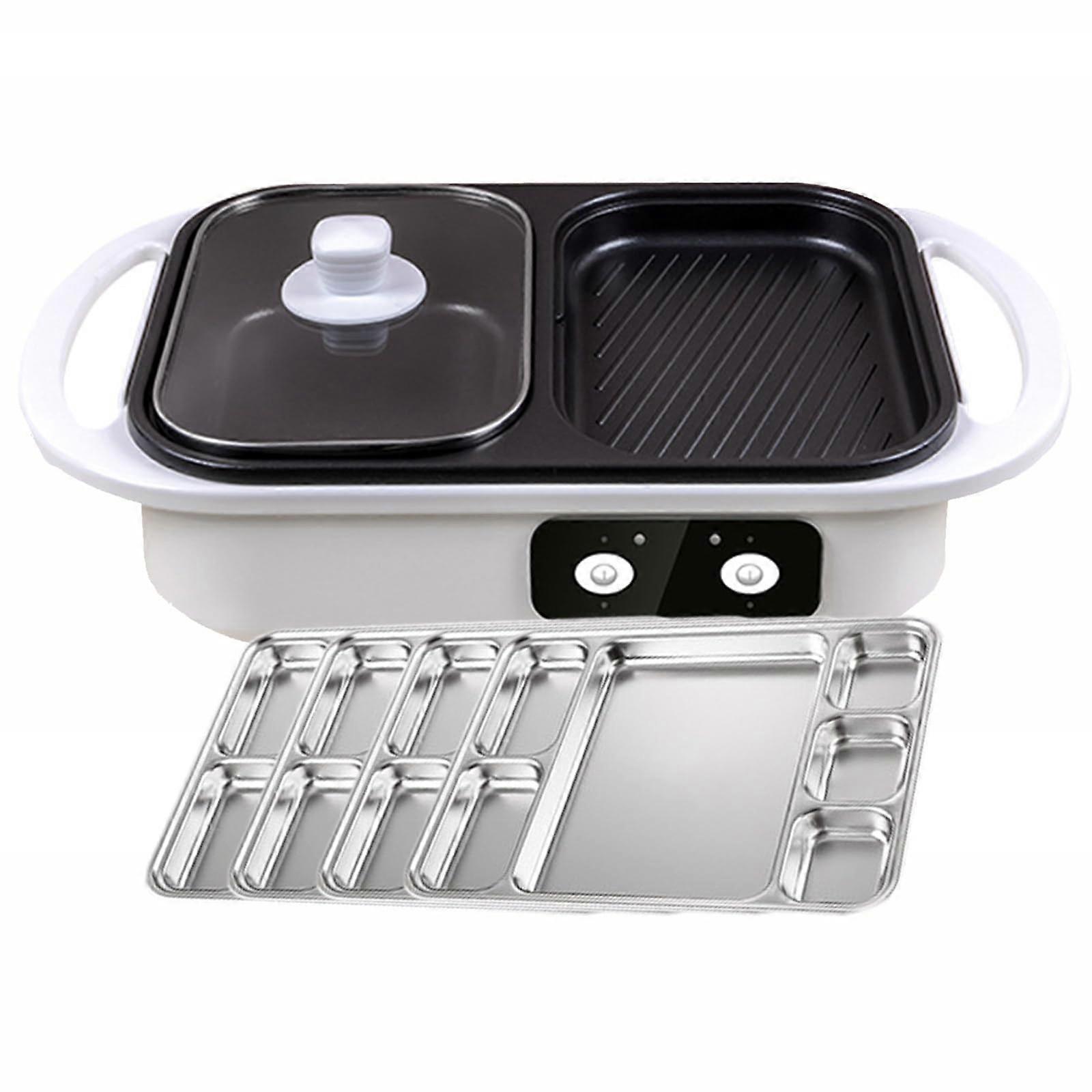 2in1 Electric Hot Pot and Grill with Divider, Dual Temperature Control, NonStick BBQ Griddle, White