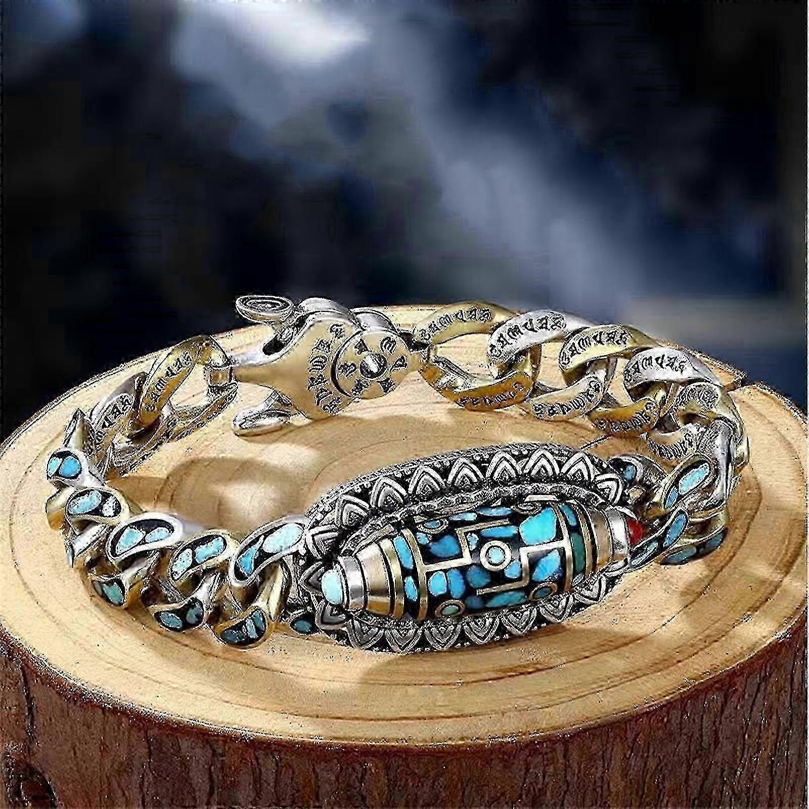 Turquoise Six-character Mantra Nine-eyed Dzi Bead Bracelet, Transfer Rotating Nine Eyes Dzi Beads Bracelet, Meditation Luck Amulet Bracelet ympc