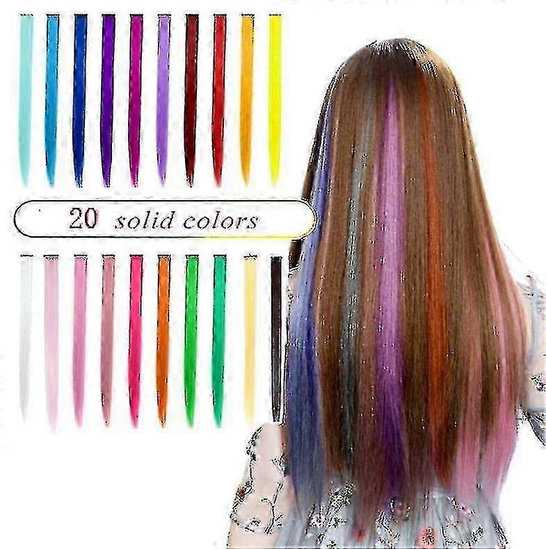 20 Pcs Colored Hair Extensions, Multi-colors Party Highlights Clip Synthetic Hair Extensions 20 Inch ,100% Heat-resistant Synthetic Fiber(colorfu ympc